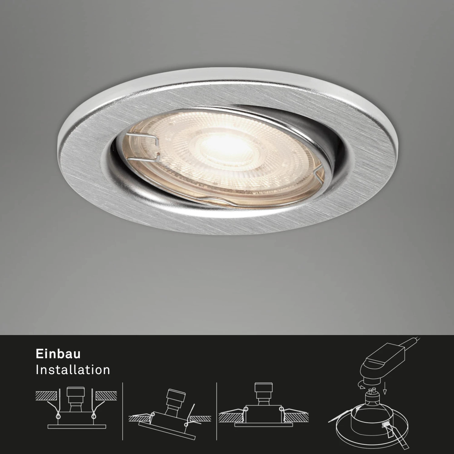 – Moderne, aluminiumfarbige LED Einbauleuchten (3er Set), gefertigt aus Metall