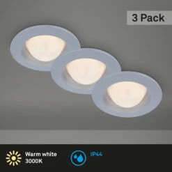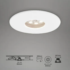 Einstellbare Farbtemperatur: Mit dem integrierten CTS Schalter können Sie die Farbtemperatur des LED Spot nach Ihren Wünschen anpassen. Wählen Sie zwischen 2700K, 4000K und 6500K (warmweiß, neutralweiß, kaltweiß). Technische Daten: Mit einer Leistung von je 4,9 Watt und einer Helligkeit von je 580 Lumen bietet diese Feuchtraumleuchte LED im 3er Set eine ansprechende Beleuchtung. Spritzwasserschutz: Dank des IP44 Spritzwasserschutzes ist diese Einbauleuchte LED sowohl für das Badezimmer als auch für die Küche geeignet. Sie können den Einbauspot bedenkenlos in feuchten Umgebungen installieren, ohne sich um Schäden durch Spritzwasser sorgen zu müssen. Einbaumaße: Mit Abmessungen von 90x40mm (DxH) und Einbaumaßen von 68x30mm (DxH) ist dieser LED Deckenstrahler für Innen problemlos in Decken oder Wänden integrierbar