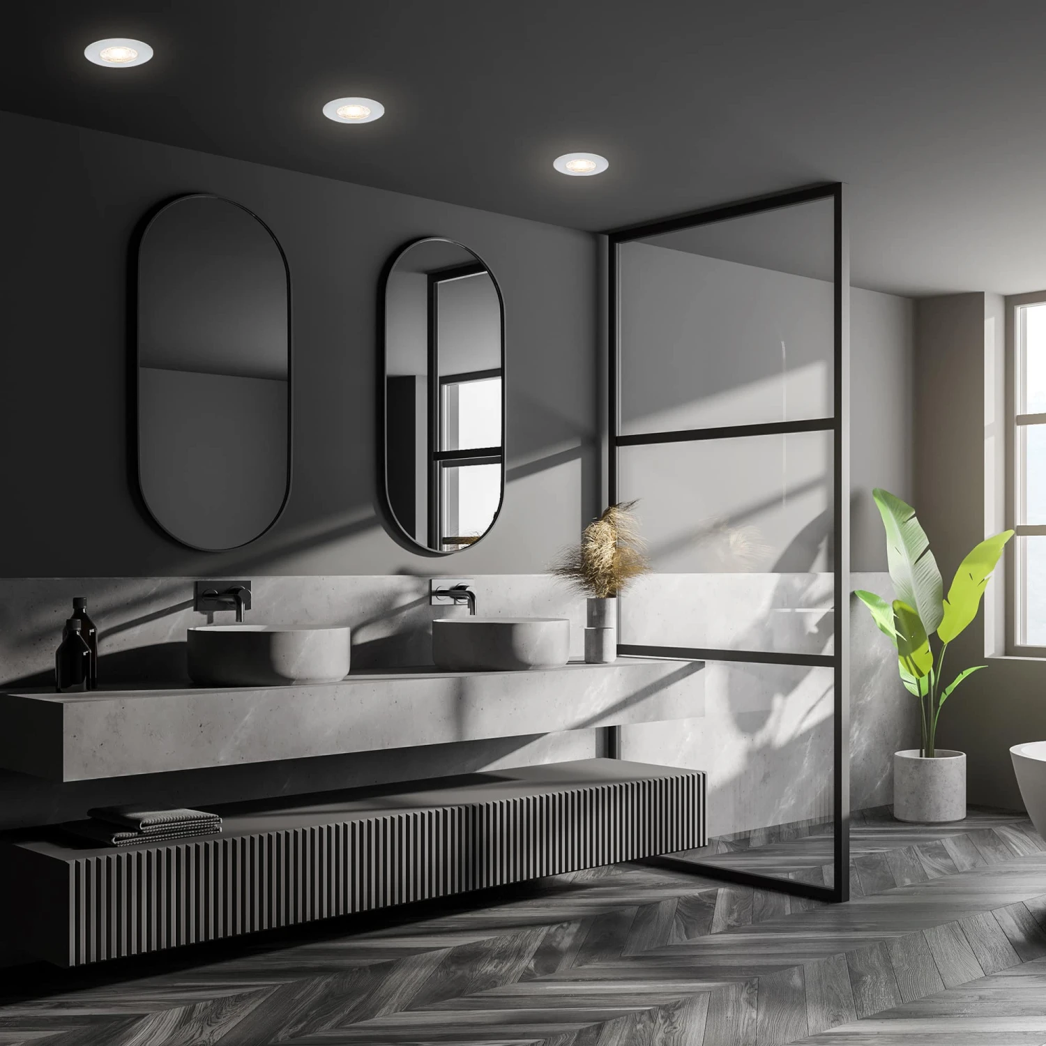 Warmweißes Licht: Die Farbtemperatur beträgt 3.000 Kelvin und bietet somit ein angenehmes, warmweißes Licht. Technische Daten: Mit einer Leistung von je 3,6 Watt und einer Helligkeit von je 340 Lumen bietet diese Feuchtraumleuchte LED im 3er Set eine ansprechende Beleuchtung. Spritzwasserschutz: Dank des IP44 Spritzwasserschutzes ist diese Einbauleuchte LED sowohl für das Badezimmer als auch für die Küche geeignet. Sie können den Einbauspot bedenkenlos in feuchten Umgebungen installieren, ohne sich um Schäden durch Spritzwasser sorgen zu müssen. Flache Einbaumaße: Mit Abmessungen von 65x25mm (DxH) und Einbaumaßen von 55x30mm (DxH) ist dieser LED Deckenstrahler für Innen besonders flach. Dadurch lässt er sich problemlos in Decken oder Wänden integrieren.