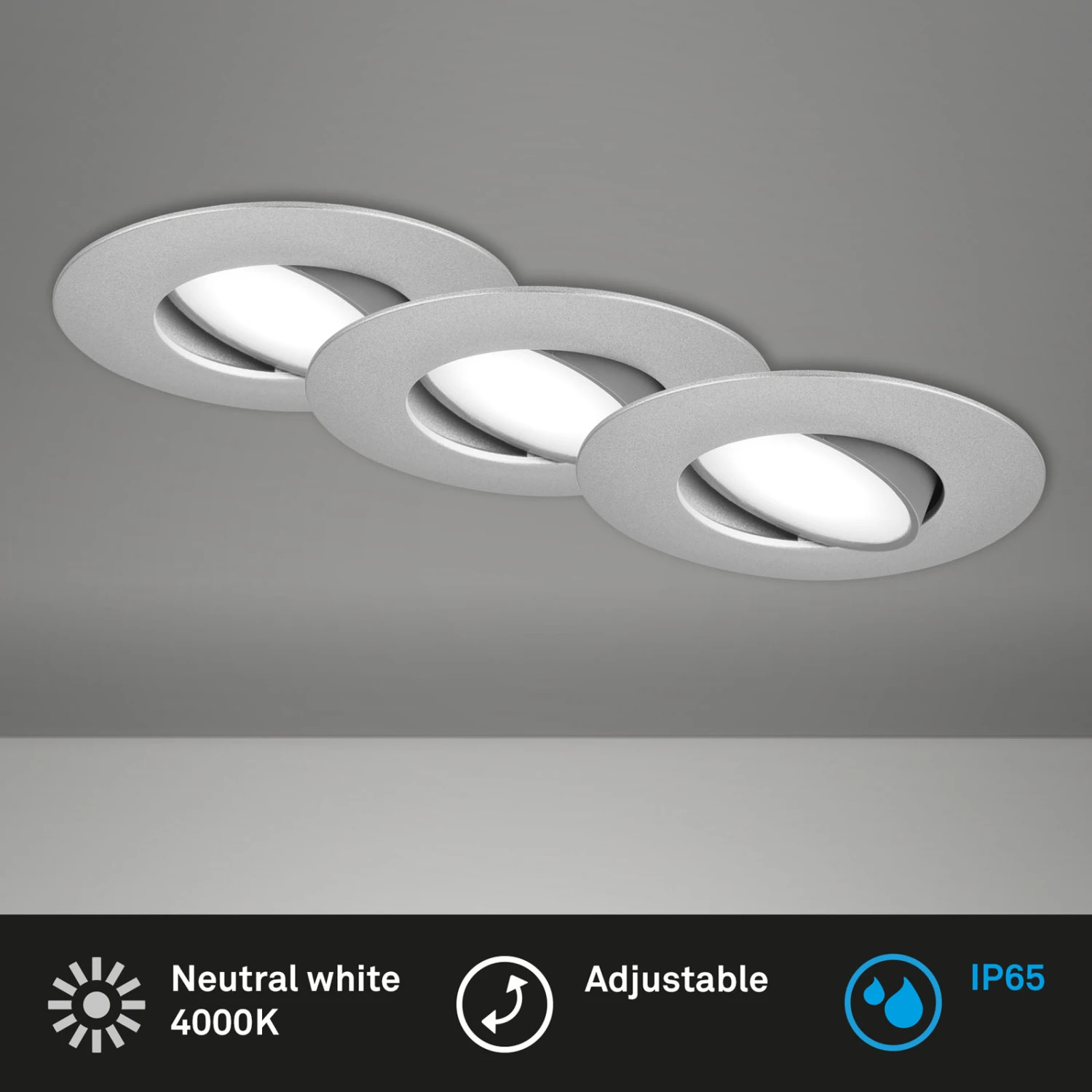 3er Set LED Einbauleuchte, 9 Cm, 3x 4,9W, 480lm, Chrom-matt