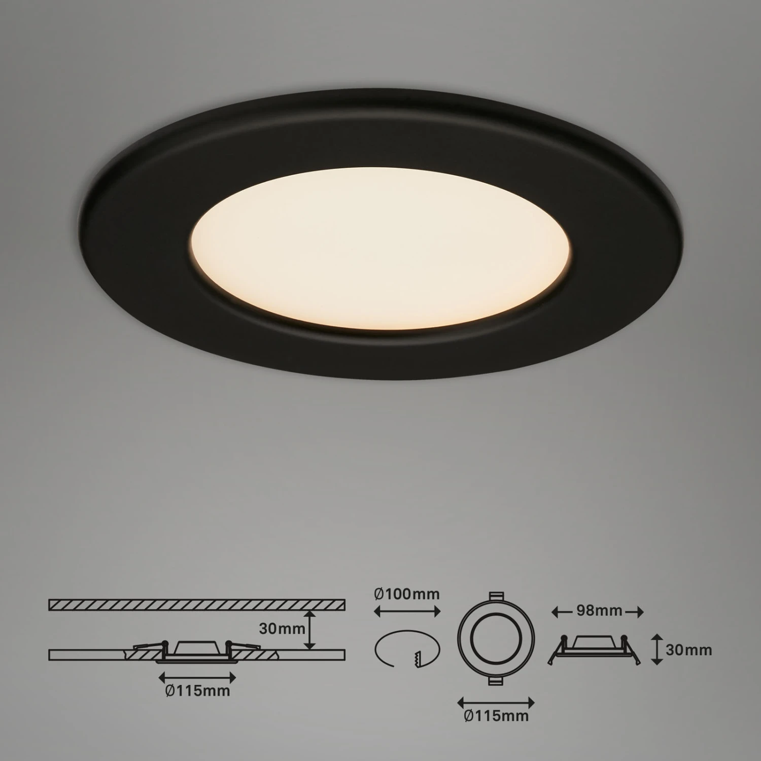 – und erweiterbar. Durch die Schutzart IP44 (spritzwassergeschützt) sind diese LED Einbauleuchten fürs Badezimmer / Bad geeignet. Ausgestattet mit einem energiesparenden LED-Modul mit je 6 Watt Energieverbrauch und 650 Lumen Lichtleistung. Mit einer Farbtemperatur von 3.000 Kelvin wird ein angenehm warm weißes Licht erzeugt. Die durchschnittliche Lebensdauer ist mit ca. 25.000 Stunden sehr hoch, sodass Sie lange Freude an den Einbaulampen haben werden. Produktabmessungen: 115x30mm (DxH); Einbaumaße: 100x30mm (DxH)