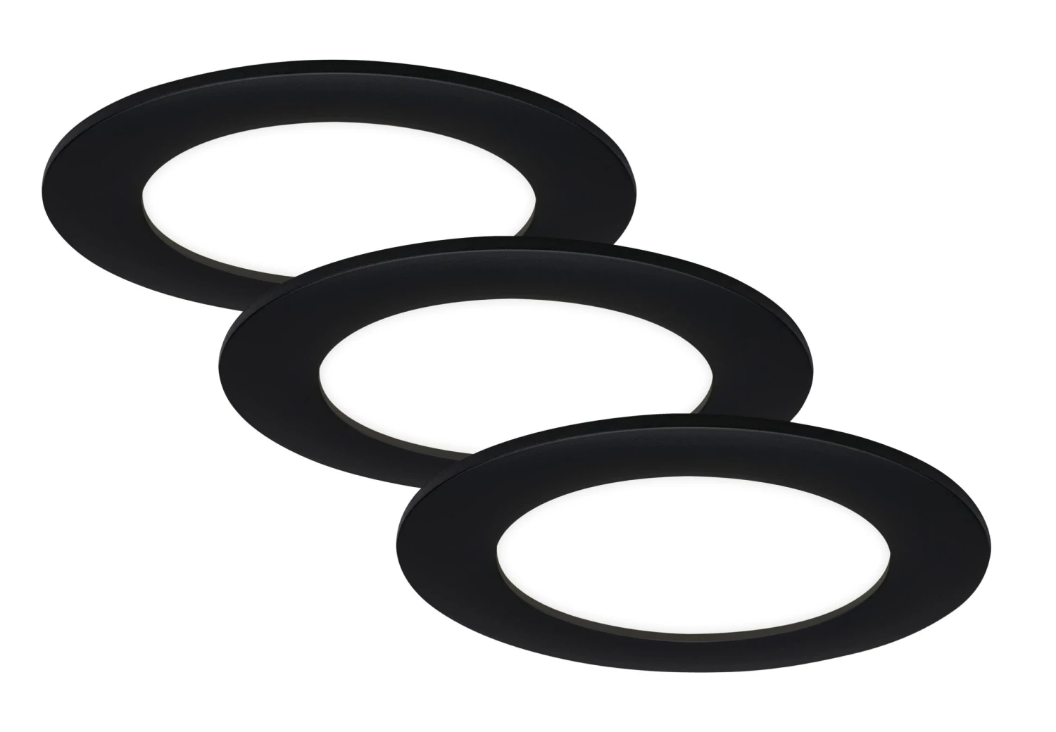 Dieses LED Einbauleuchten Set in schwarz-matt verleiht mit seinem klaren Design jedem Einrichtungskonzept das gewisse Extra. Vielseitig einsetzbar durch ein geringes Einbaumaß von nur Ø108mm. Es ist kein Trafo notwendig Â? es erfolgt ein direkter Anschluss an das 230V Stromnetz. Diese Einbauleuchten sind beliebig positionier-, kombinier