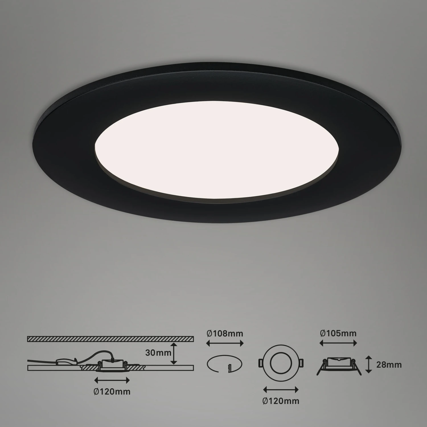 – und erweiterbar. Durch die Schutzart IP44 (spritzwassergeschützt) sind diese LED Einbauleuchten fürs Badezimmer / Bad geeignet. Ausgestattet mit einem energiesparenden LED-Modul mit je 7 Watt Energieverbrauch und 600Lumen Lichtleistung. Mit einer Farbtemperatur von 4.000 Kelvin wird ein angenehm neutralweißes Licht erzeugt. Die durchschnittliche Lebensdauer ist mit ca. 25.000 Stunden sehr hoch, sodass Sie lange Freude an den Einbaulampen haben werden. Produktabmessungen: 120×28 mm (DxH); Einbaumaß: Ø108mm, Einbauhöhe: 30mm
