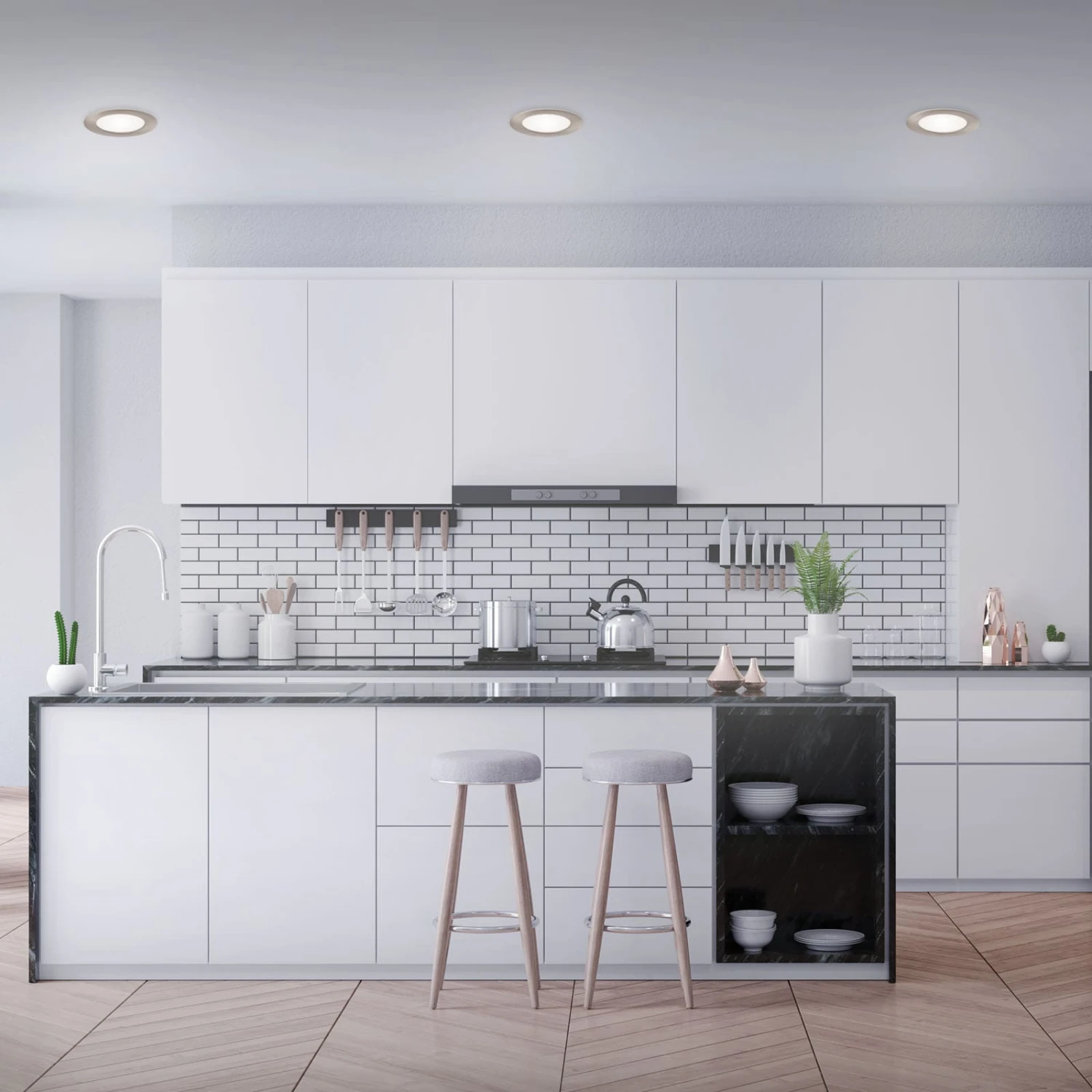 FLAT-IN LED Einbauleuchten 3er Set Kunststoff / matt-nickel inkl. 3 x LED-Platine 7W 600lm 4.000K Lebensdauer 25.000h, Ra>=80 nicht dimmbar IP44 120x28mm (DxH), Einbaumaß: 108x30mm (DxH)