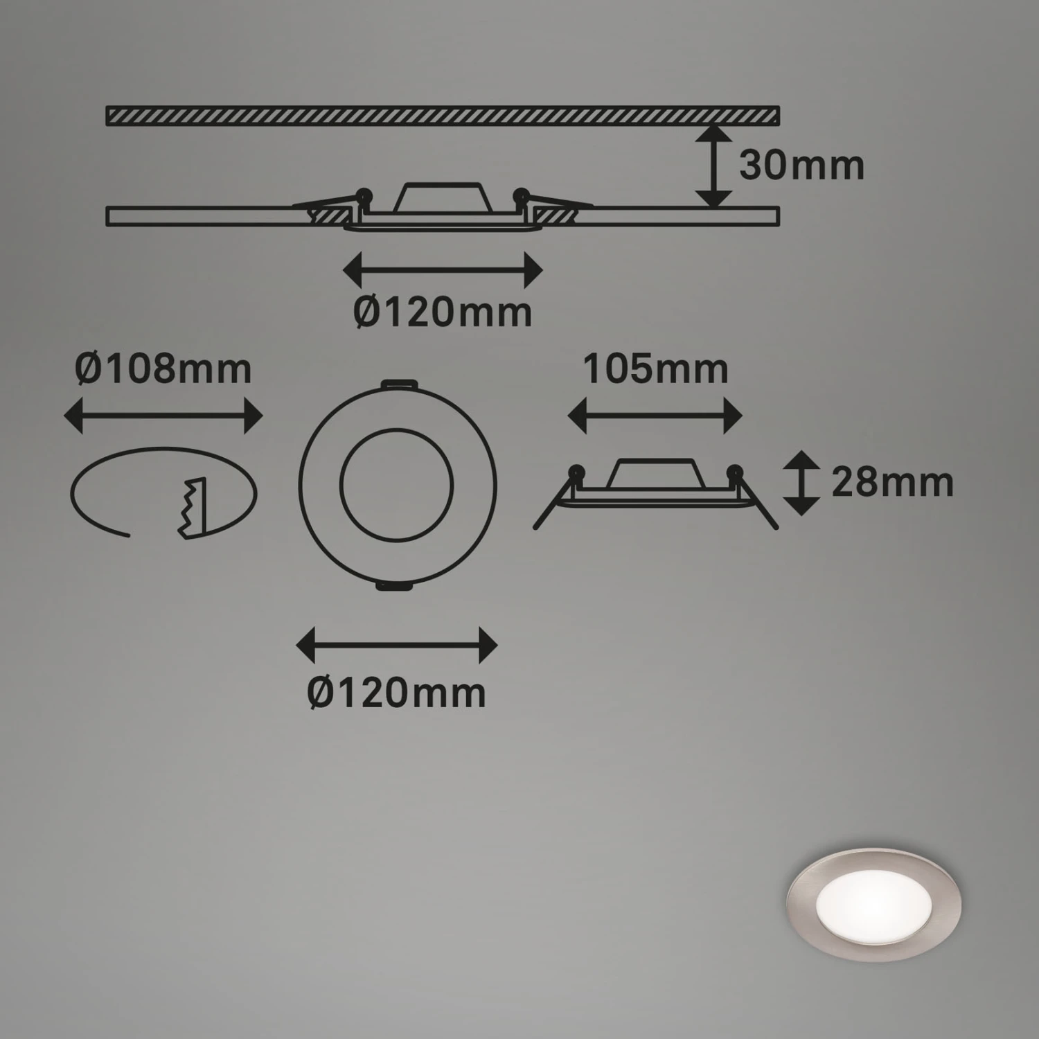 3er Set LED Einbauleuchte, Ø 12 Cm, 7 W, Matt-Nickel