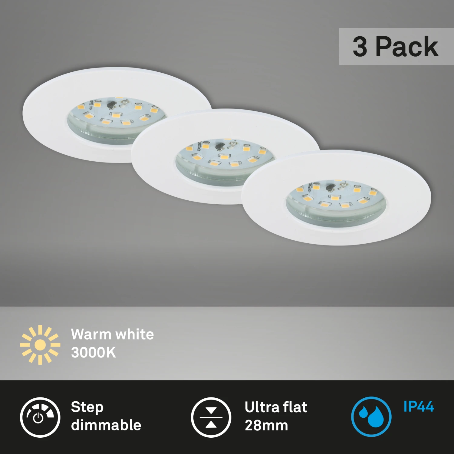 – Schlichte, moderne LED Einbauleuchten (3er Set) in weiß, gefertigt aus Kunststoff