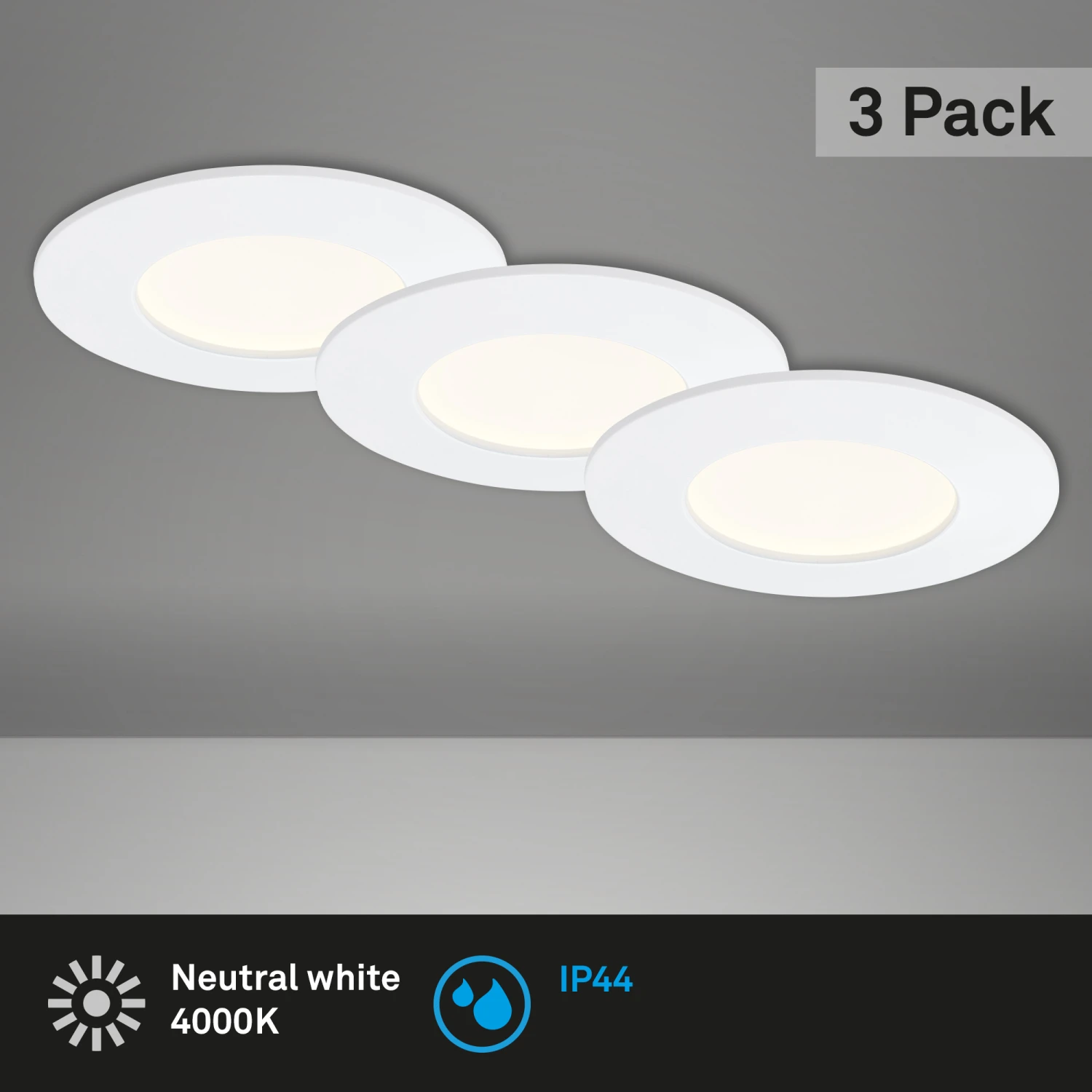 3er Set LED Einbauleuchte, Ø 8,5 Cm, 6 W, Weiß