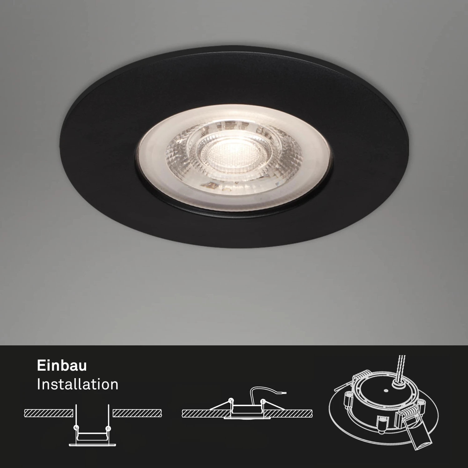 – Schlichte, moderne LED Einbauleuchten (3er Set) in schwarz-matt, gefertigt aus Kunststoff