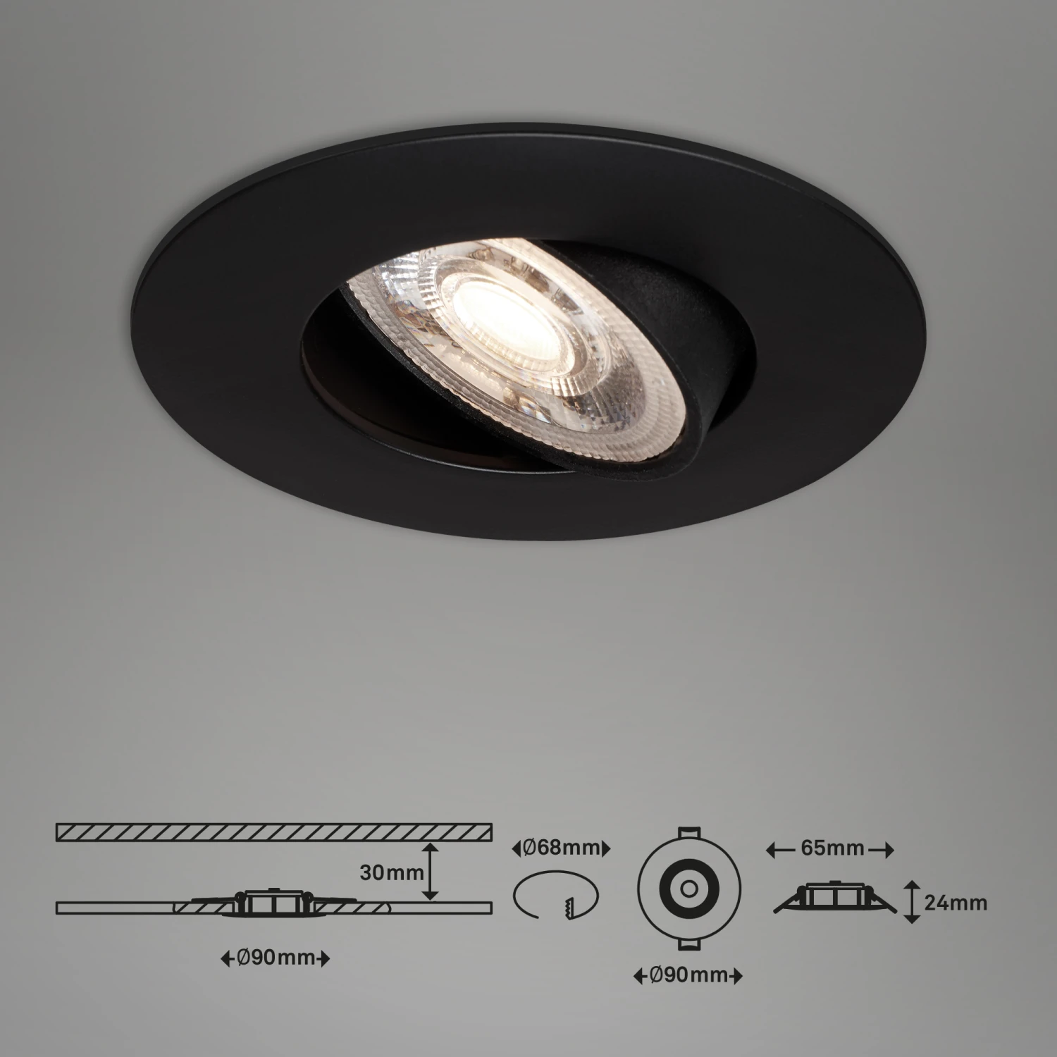– Produktabmessungen: 90x24mm (DxH), Einbaumaße: 68x30mm (DxH)