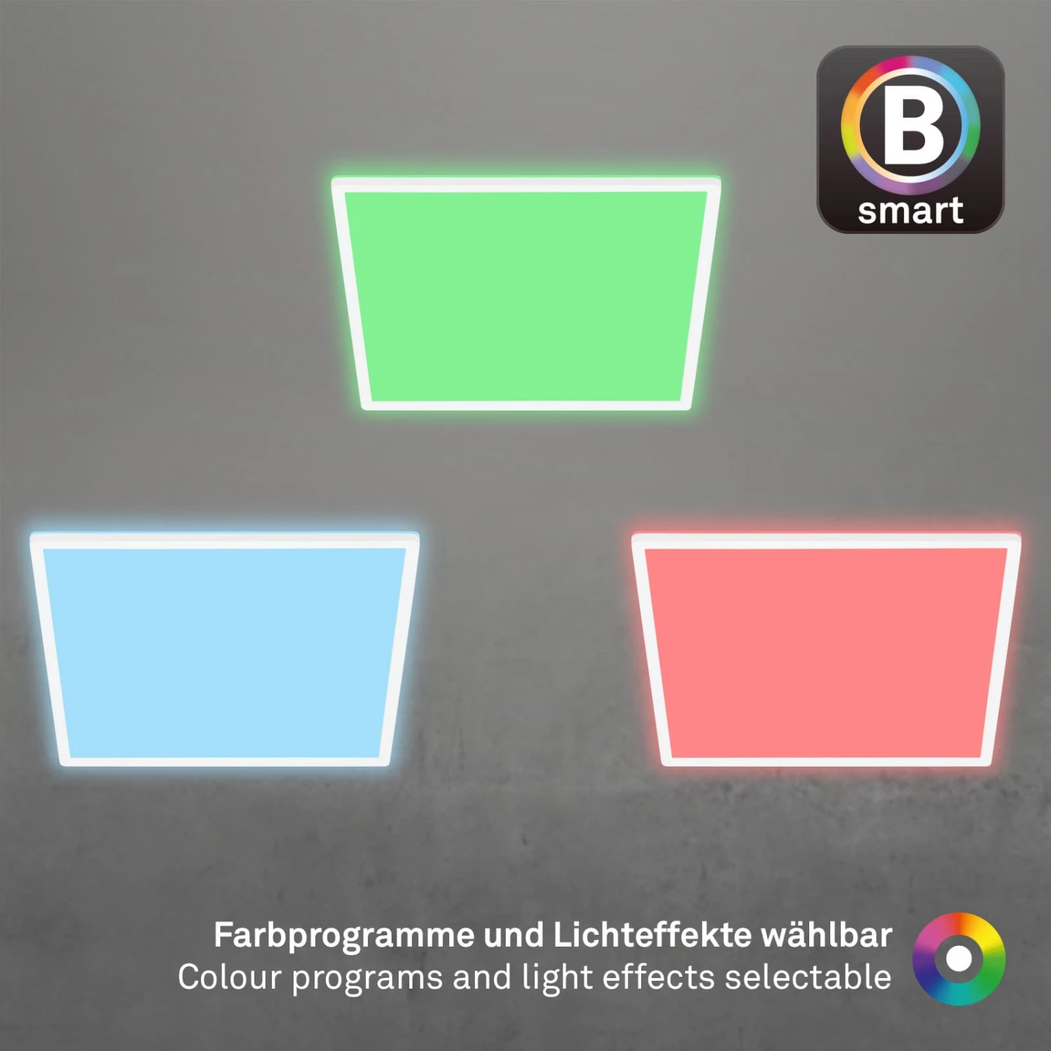 – oder Küchenleuchte. Besonders ästhetisch ist der Lichtaustritt auf der Rückseite, der die Decke im Wohnzimmer, im Flur oder im Esszimmer in einem schönen Licht erstrahlen lässt. Die RGB-Funktion ermöglicht einen dynamischen Farbwechsel und die Auswahl von 7 festen Farben. Mit 22 Watt und 2700 Lumen wird Ihnen eine Menge Licht geboten. Diese Leistung verteilt sich auf eine Fläche von 420x420x30 mm (LxBxH).