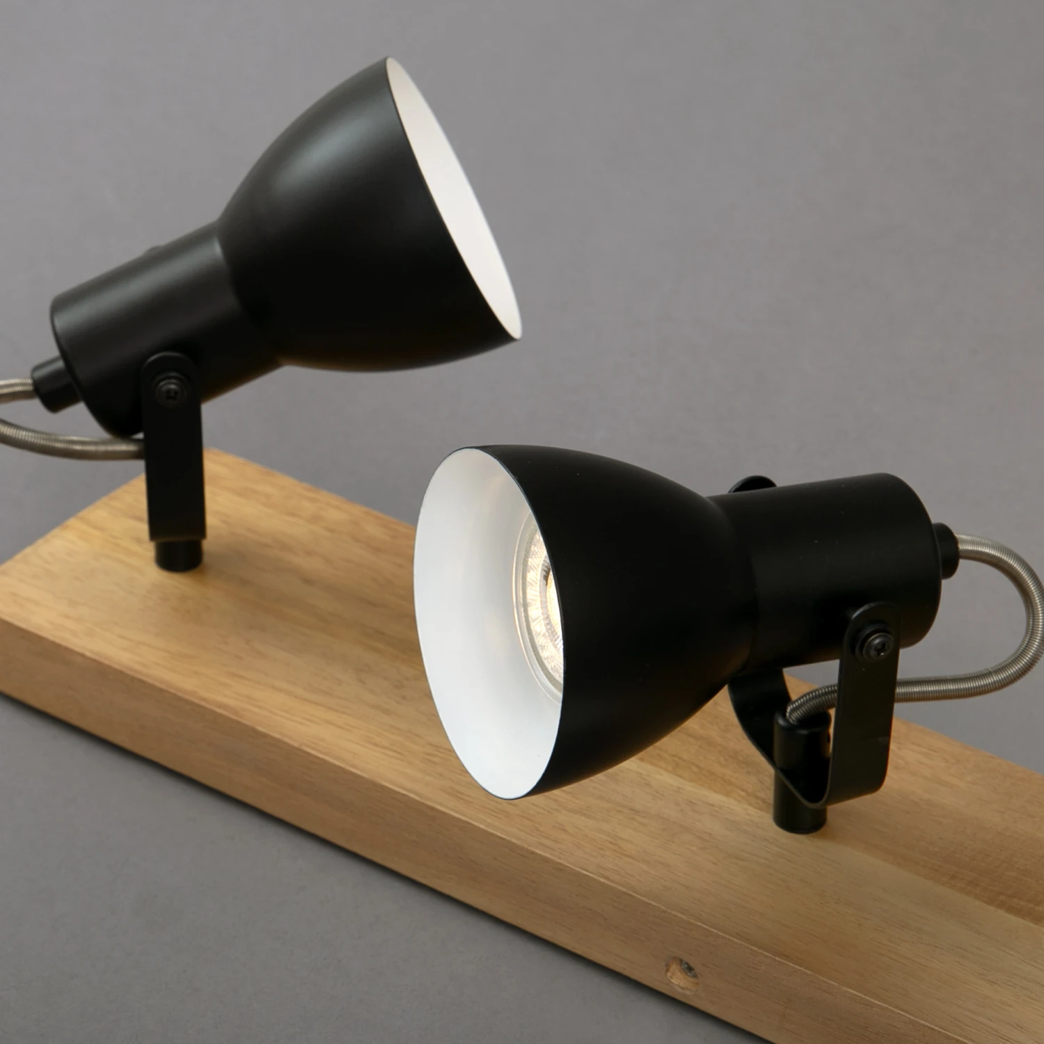 – Diese schwarze Spotlampe in ihrem schlichten retro/vintage Design fügt sich optimal in alle Räumlichkeiten ein und wird durch die schwarz-weiße, edle Optik in Kombination mit der Holzbasis schnell zu einem Blickfang