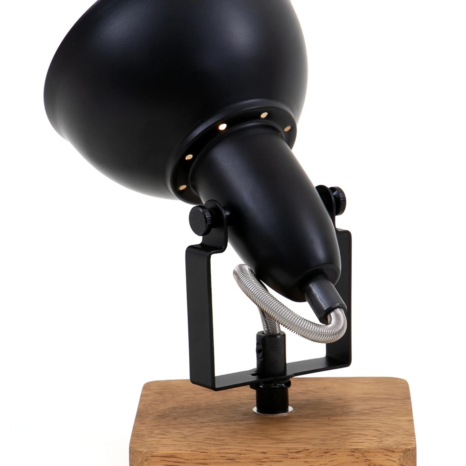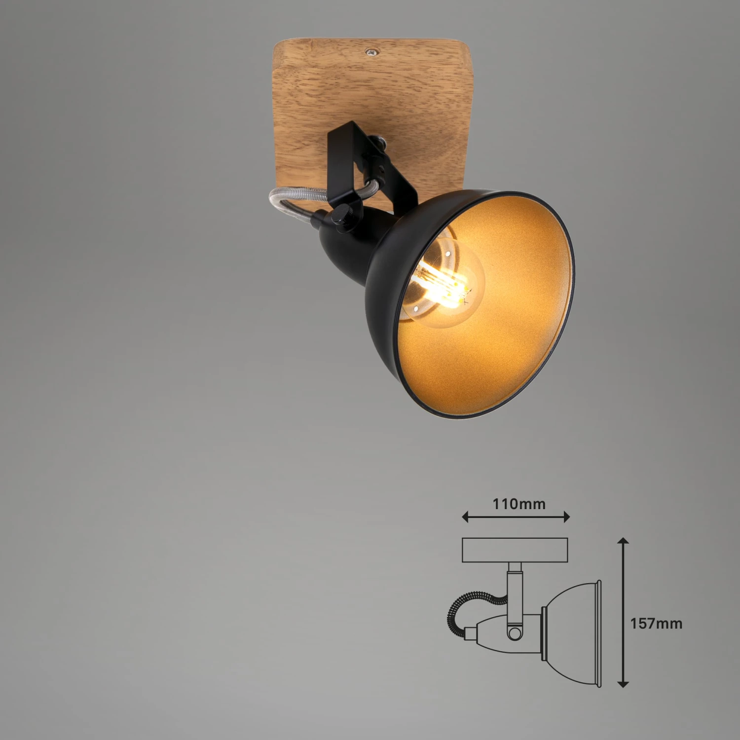 – Diese schwarze 1-flammige Spotlampe in ihrem schlichten retro/vintage Design fügt sich optimal in alle Räumlichkeiten ein und wird durch die schwarz-goldene, edle Optik in Kombination mit der Holzbasis schnell zu einem Blickfang