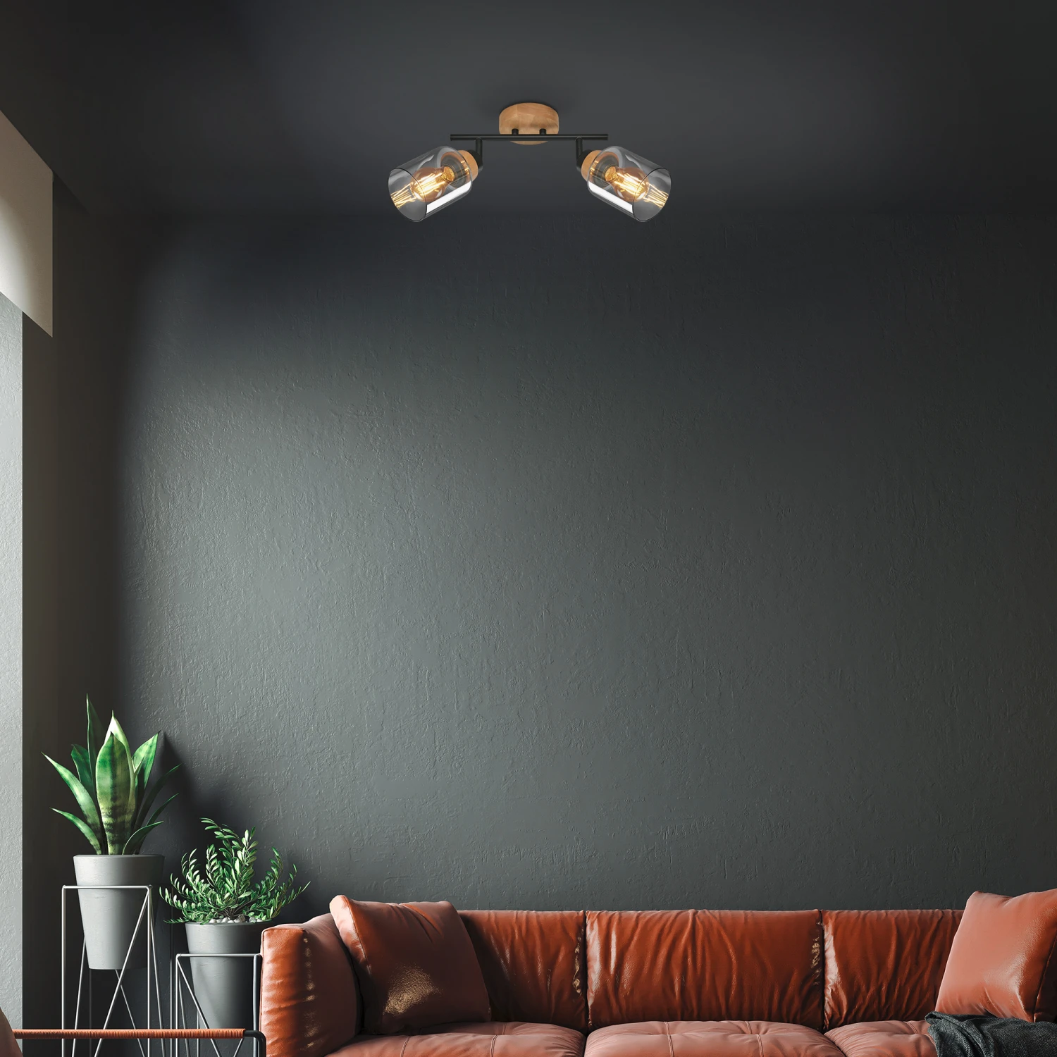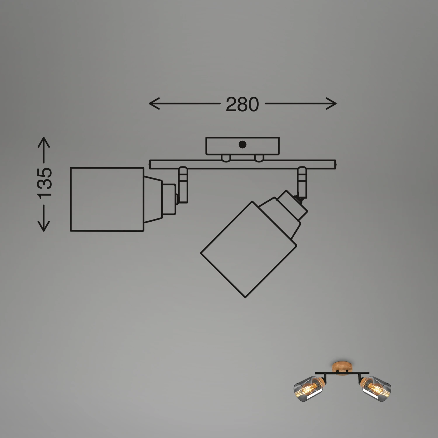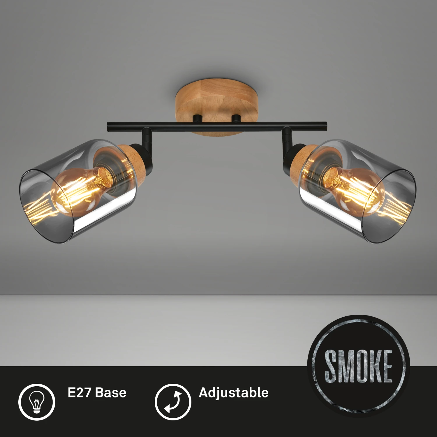 Briloner Hema Deckenstrahler, Rauchglas, Schwenkbar, 2-flammig, Holzbasis