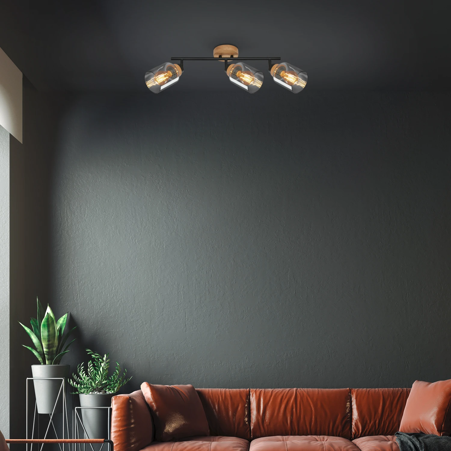 Einzigartige Rauchglas-Akzente: Unsere moderne 3-flammige Lampe für das Wohnzimmer setzt mit dem verbauten Rauchglas faszinierende Akzente und schafft eine einladende Atmosphäre. Anpassbare Lichtausrichtung: Die schwenkbaren Spotköpfe des Deckenstrahlers ermöglichen individuelle Beleuchtungseffekte im Wohnzimmer, Schlafzimmer, Küche oder Flur. Wählbare Beleuchtung: Nutzen Sie E27-Leuchtmittel bis 10W, um stilvolles Licht mit geringem Energieverbrauch zu genießen. Wir empfehlen hier Retro Leuchtmittel. Abmessungen: Kompakte Maße mit 470x110x240mm (LxBxH) und IP20-Schutzart machen die Wohnzimmer Deckenleuchte perfekt für verschiedenste Raumgrößen und -stile. Kein Leuchtmittel im Lieferumfang enthalten.