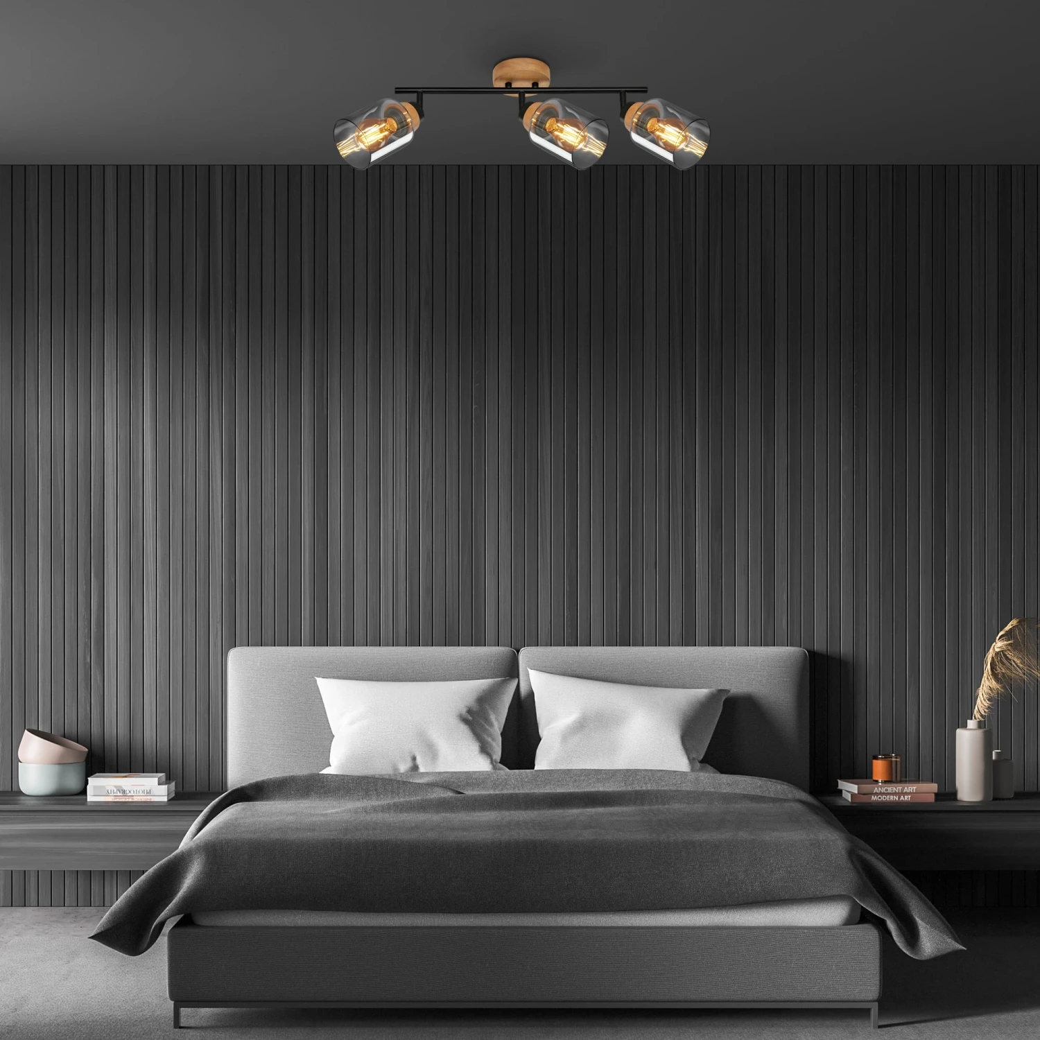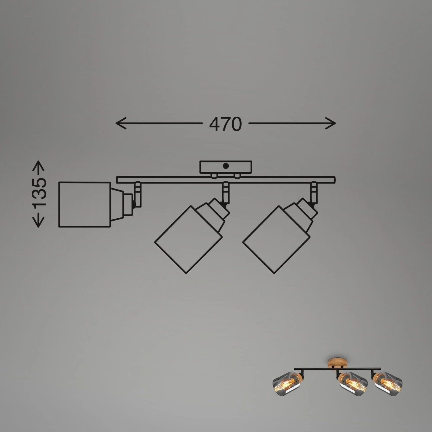 Briloner Hema Deckenstrahler, Rauchglas, Schwenkbar, 3-flammig, Holzbasis