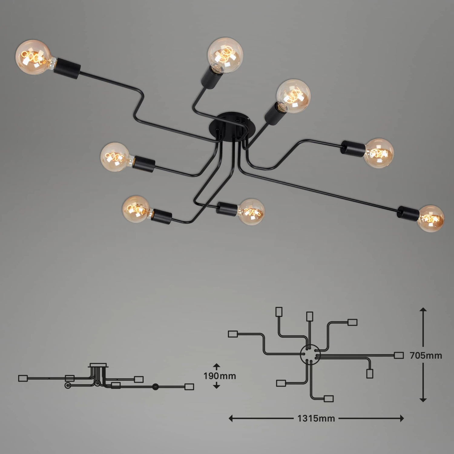 – Die maximale Wattage für diese Hängeleuchte beträgt 60 Watt (8x E27-Fassung)