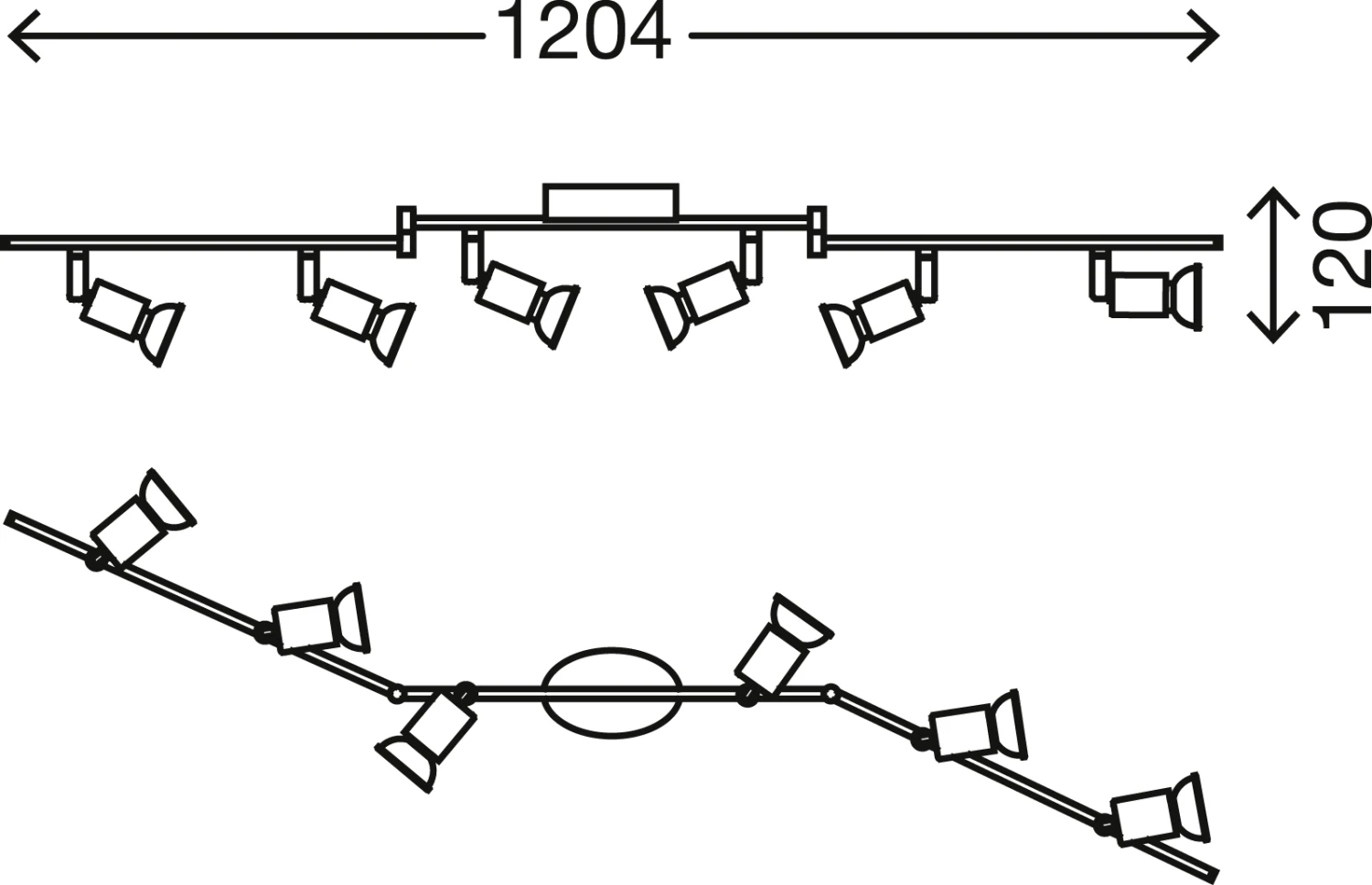 LED Deckenleuchte, 6-flammig „PICCO“ Metall / titanfarbig inkl. 6 x LED/GU10 3W 250lm 3.000K Lebensdauer 20.000 h, Ra>=80, nicht dimmbar, schwenkbar, Strahler dreh und schwenkbar IP20 1.204x80x120mm (LxBxH)