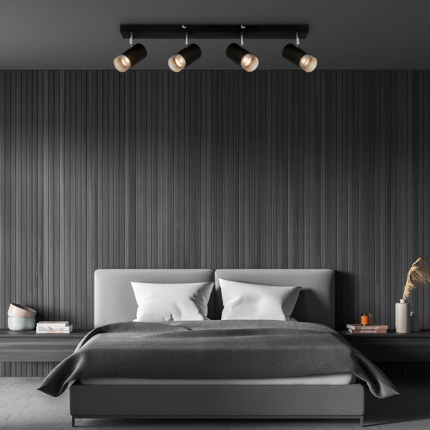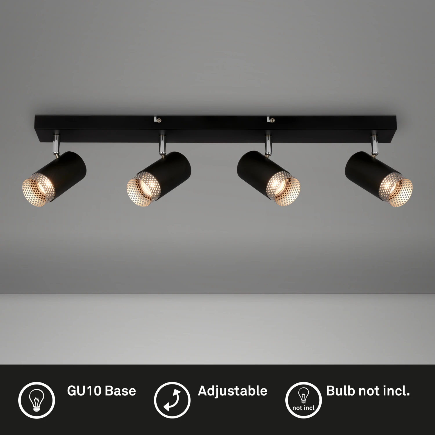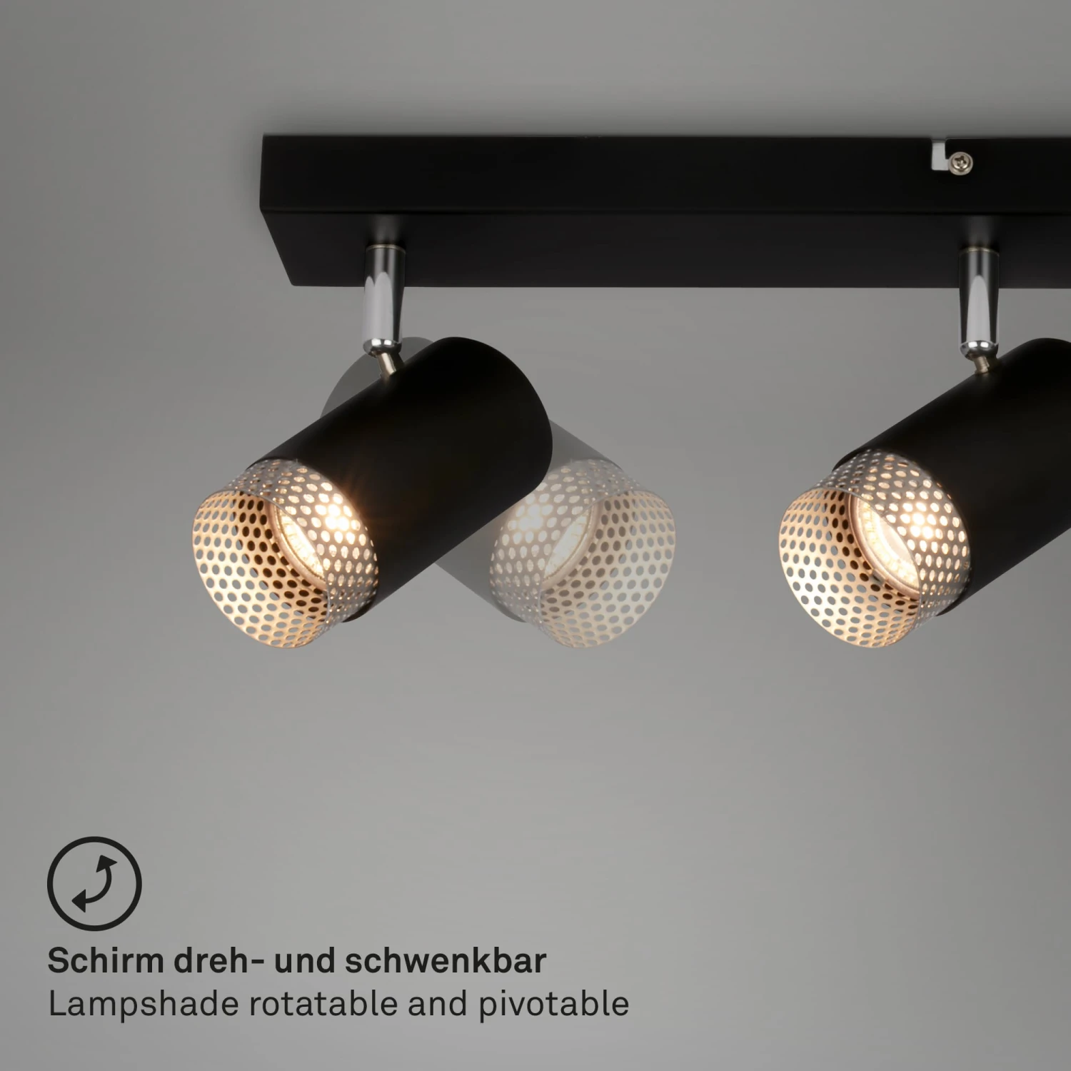 Einzigartige Akzente: Unsere moderne 4-flammige Lampe für das Wohnzimmer setzt mit dem gestanzten Gitter am Lampenschirm, in mattem Chrom, faszinierende Akzente und schafft eine einladende Atmosphäre. Anpassbare Lichtausrichtung: Die schwenkbaren Spotköpfe des Deckenstrahlers ermöglichen individuelle Beleuchtungseffekte im Wohnzimmer, Schlafzimmer, Küche oder Flur. Wählbare Beleuchtung: Nutzen Sie GU10-Leuchtmittel bis 9W, um stilvolles Licht mit geringem Energieverbrauch zu genießen. Abmessungen: Kompakte Maße mit 760x70x120mm (LxBxH) und IP20-Schutzart machen die Wohnzimmer Deckenleuchte perfekt für verschiedenste Raumgrößen und -stile. Kein Leuchtmittel im Lieferumfang enthalten.