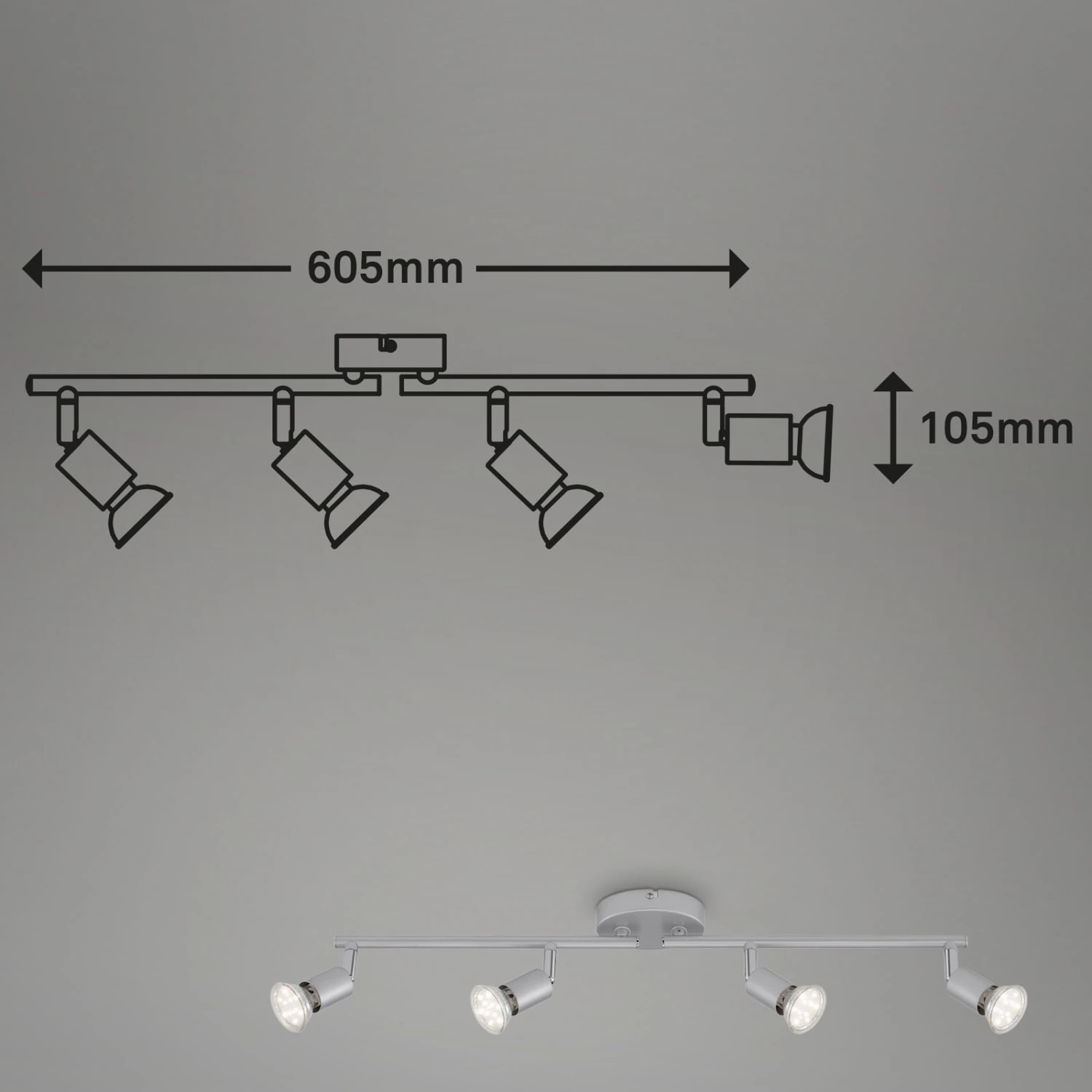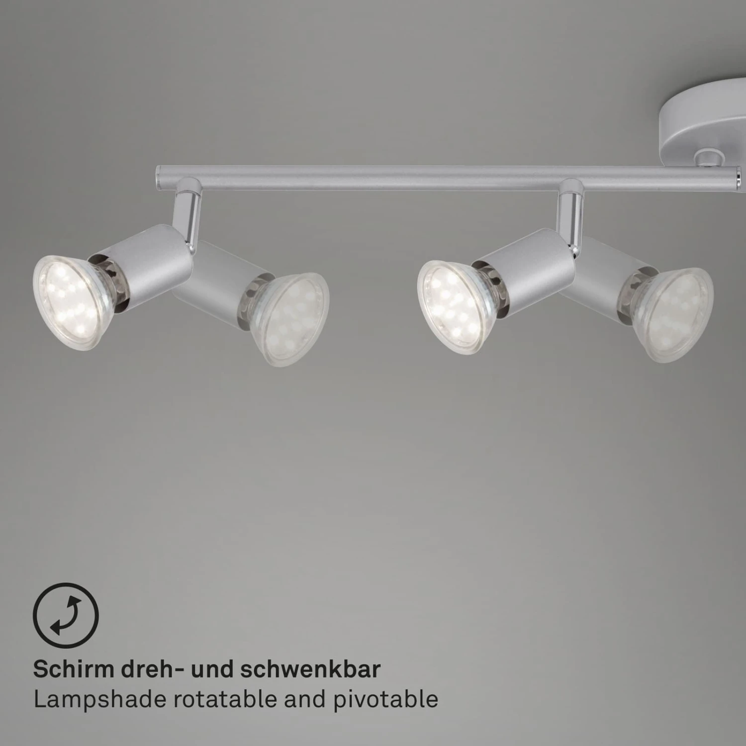LED Deckenleuchte 4-flammig Metall / titanfarbig inkl. 4 x LED/GU10 3W 250lm 3.000K Lebensdauer 20.000 h, Ra>=80, nicht dimmbar, Strahler dreh