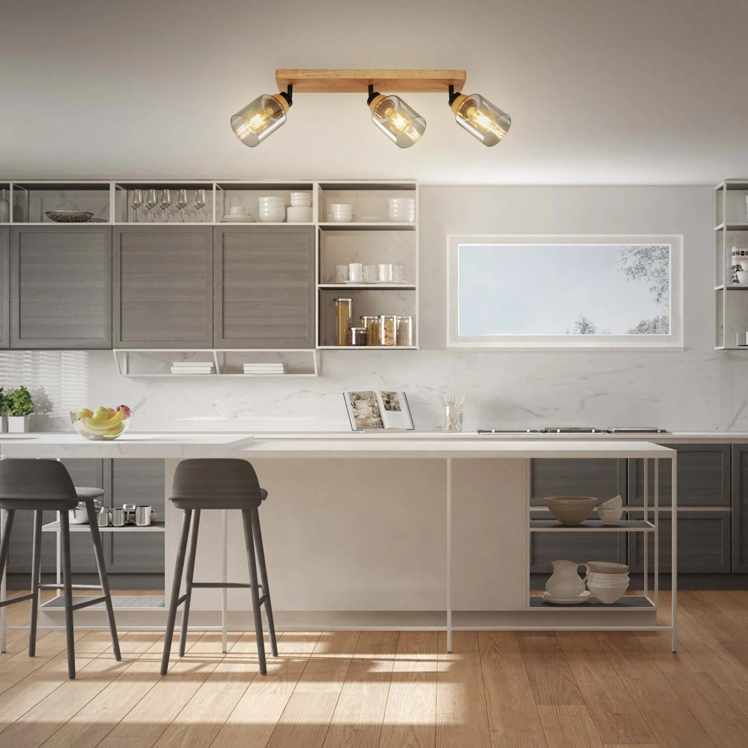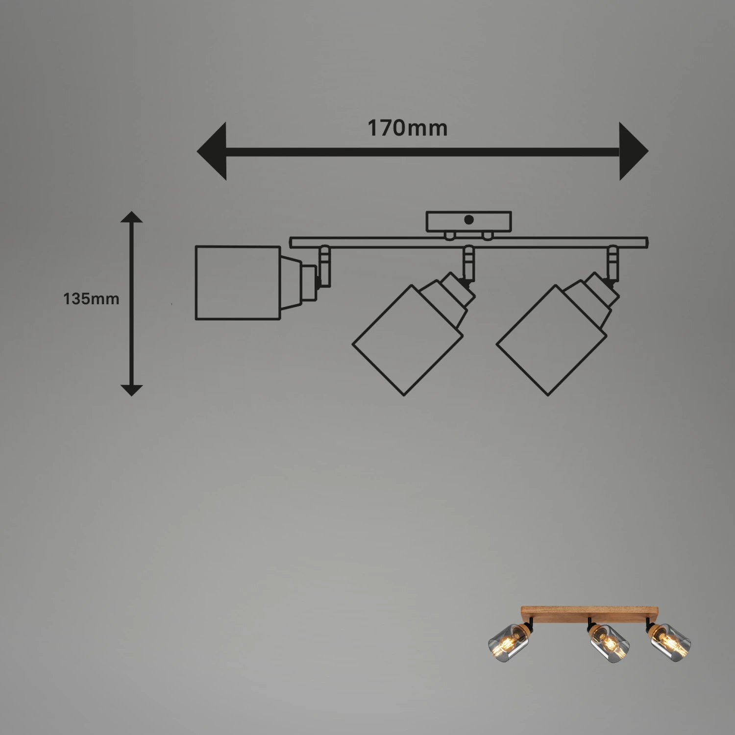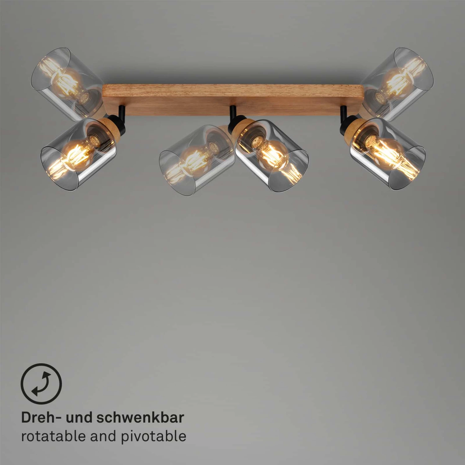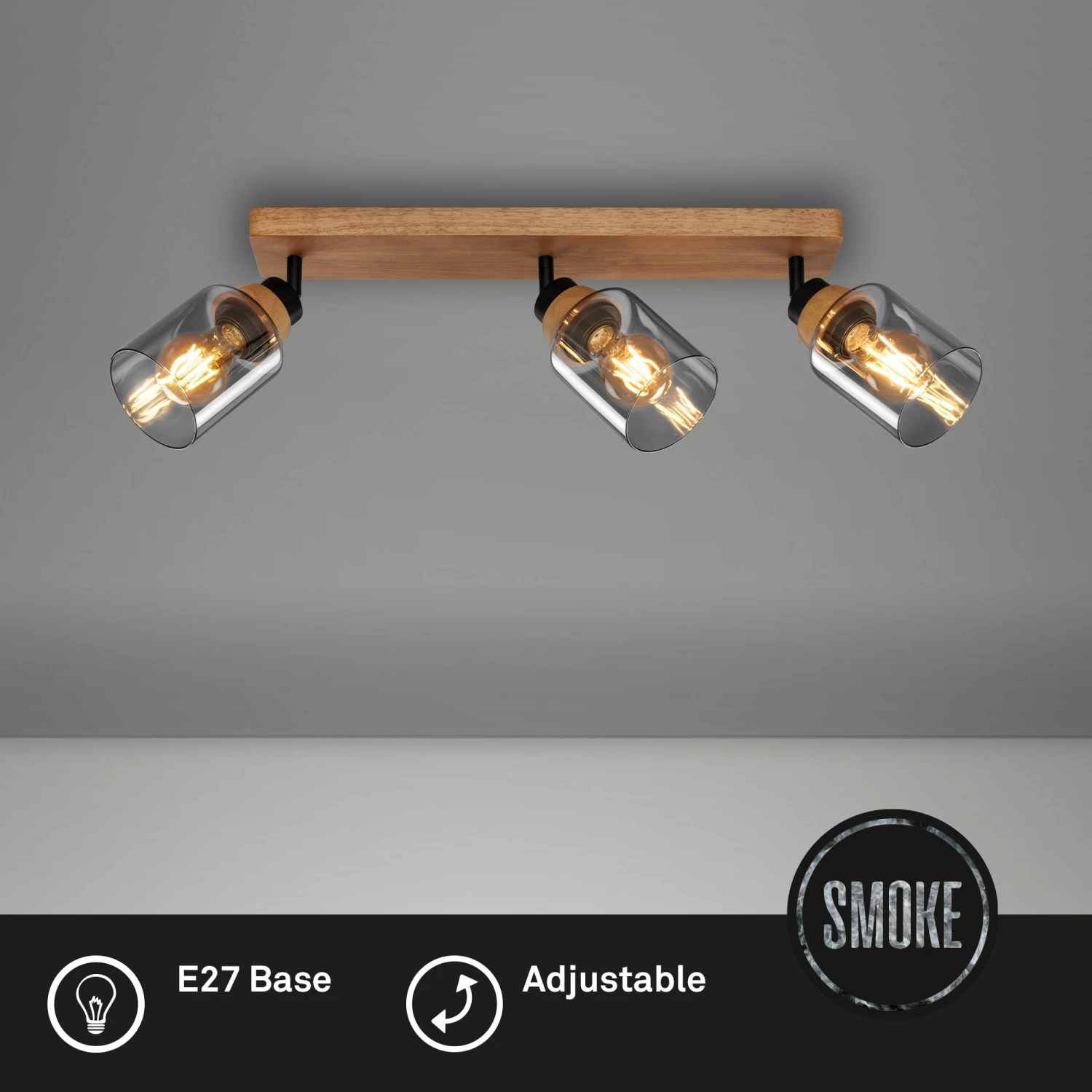 Briloner Royk Deckenstrahler, Rauchglas, Schwenkbar, 3-flammig, Holzbasis