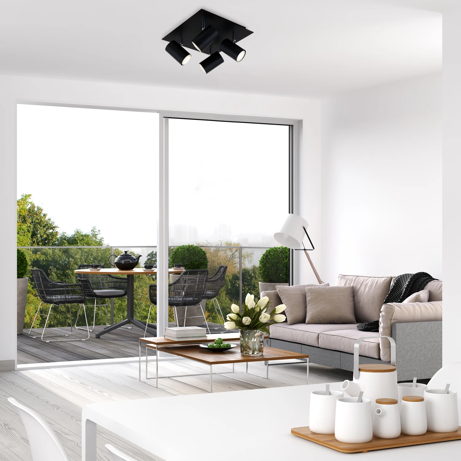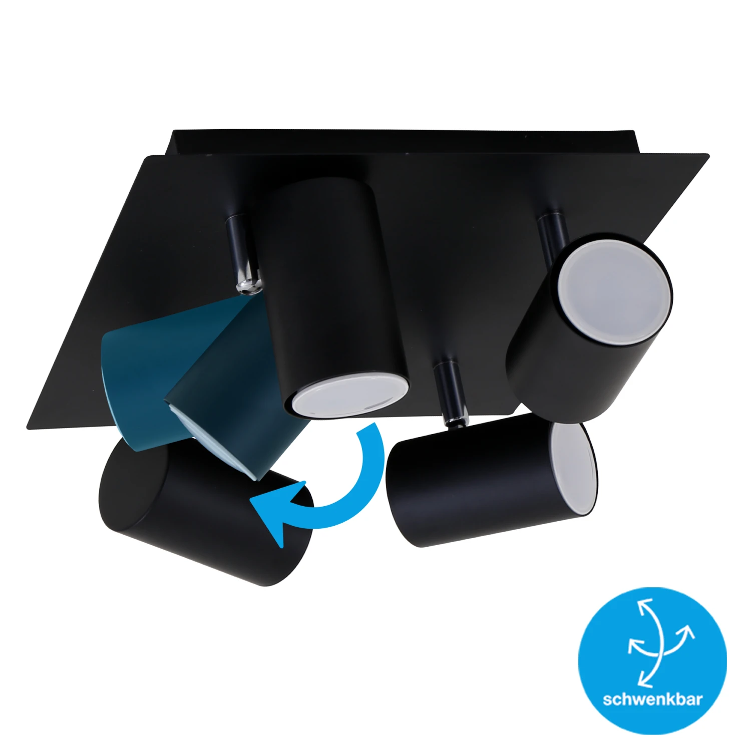 – Moderner 4-flammiger Deckenspot in schwarz, gefertigt aus Metall