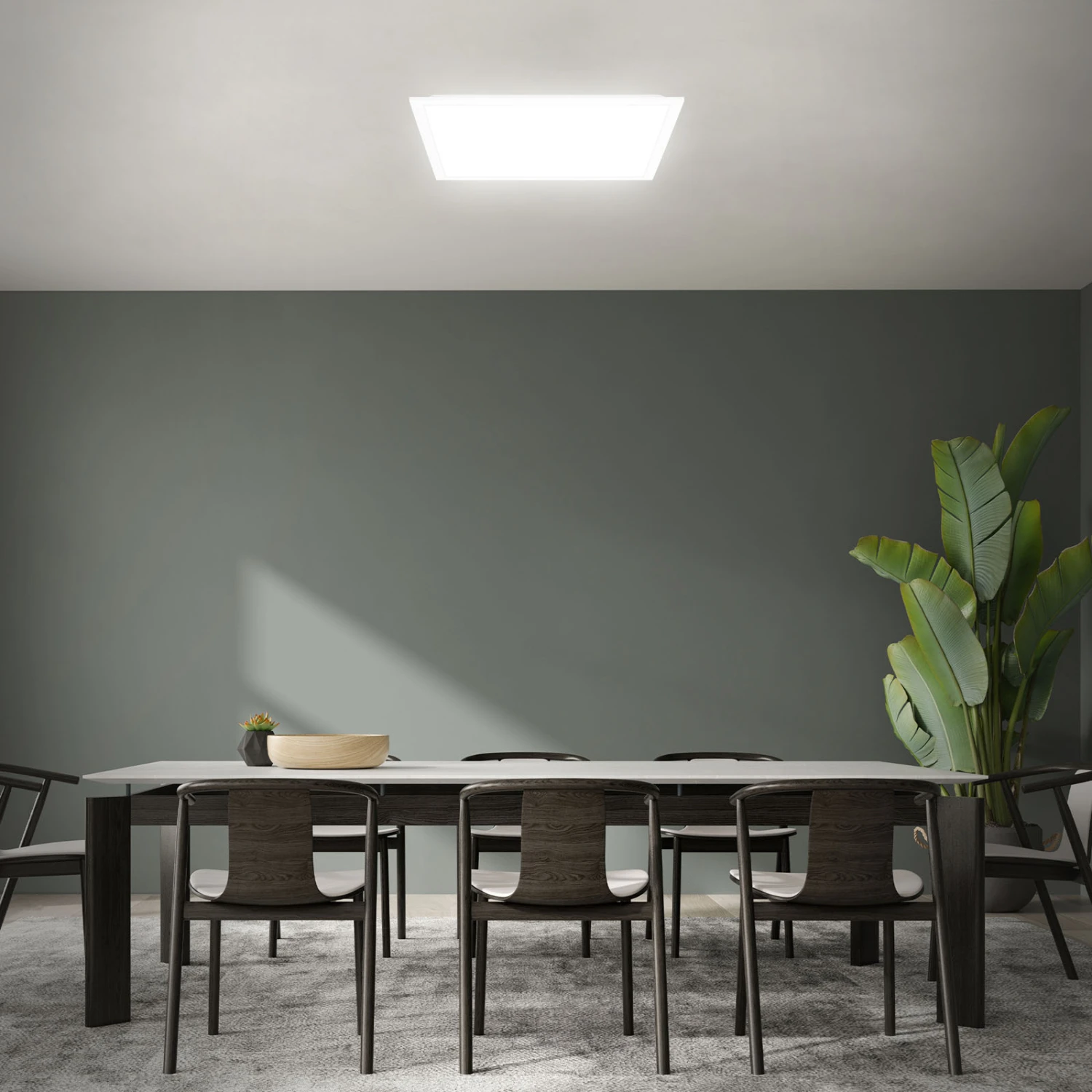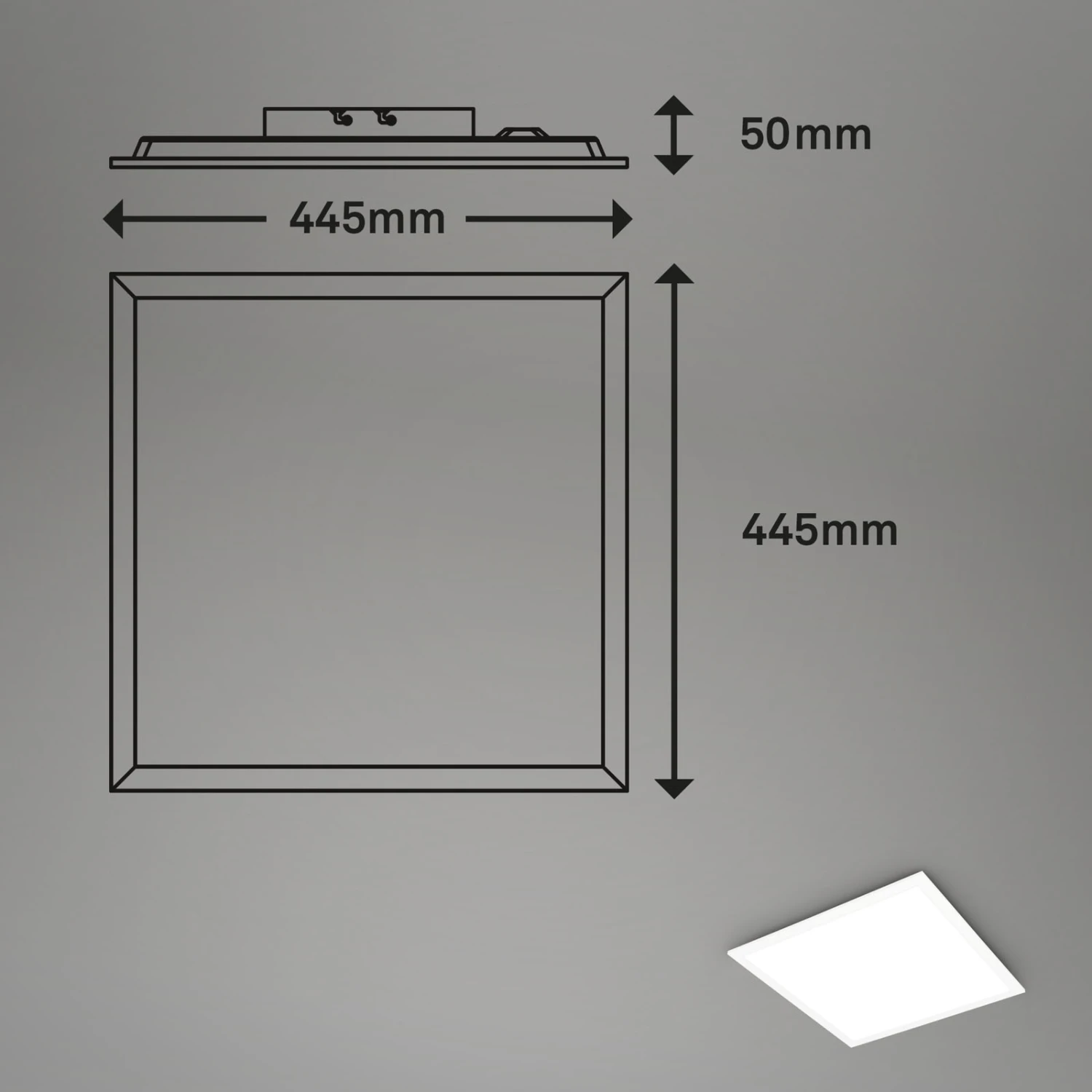 – oder Wohnatmosphäre. Neutralweißes Licht: Mit 4.000 Kelvin eignet sich die LED Leuchte optimal als Badlampe, Bürolampe, Küchenlampe Flurlampe, Kellerlampe und Wohnzimmerlampe. Zuverlässiger Schutz: Mit der IP44 Schutzklasse ist dieses LED Lampe vor Spritzwasser geschützt und eignet sich daher ideal für den Einsatz in Feuchträumen wie Badezimmern oder Küchen. Sie können es bedenkenlos installieren, ohne sich um Feuchtigkeitsschäden sorgen zu müssen. Maße: Mit den Abmessungen von 445x445x50mm hat die Badleuchte ein sehr flaches und quadratisches Maß.