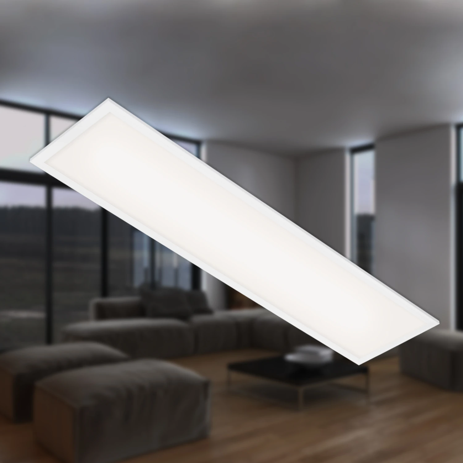 – Modernes, rechteckiges LED Panel in weiß mit weißem Rahmen in einer anderen Nuance, gefertigt aus Kunststoff-Metall
