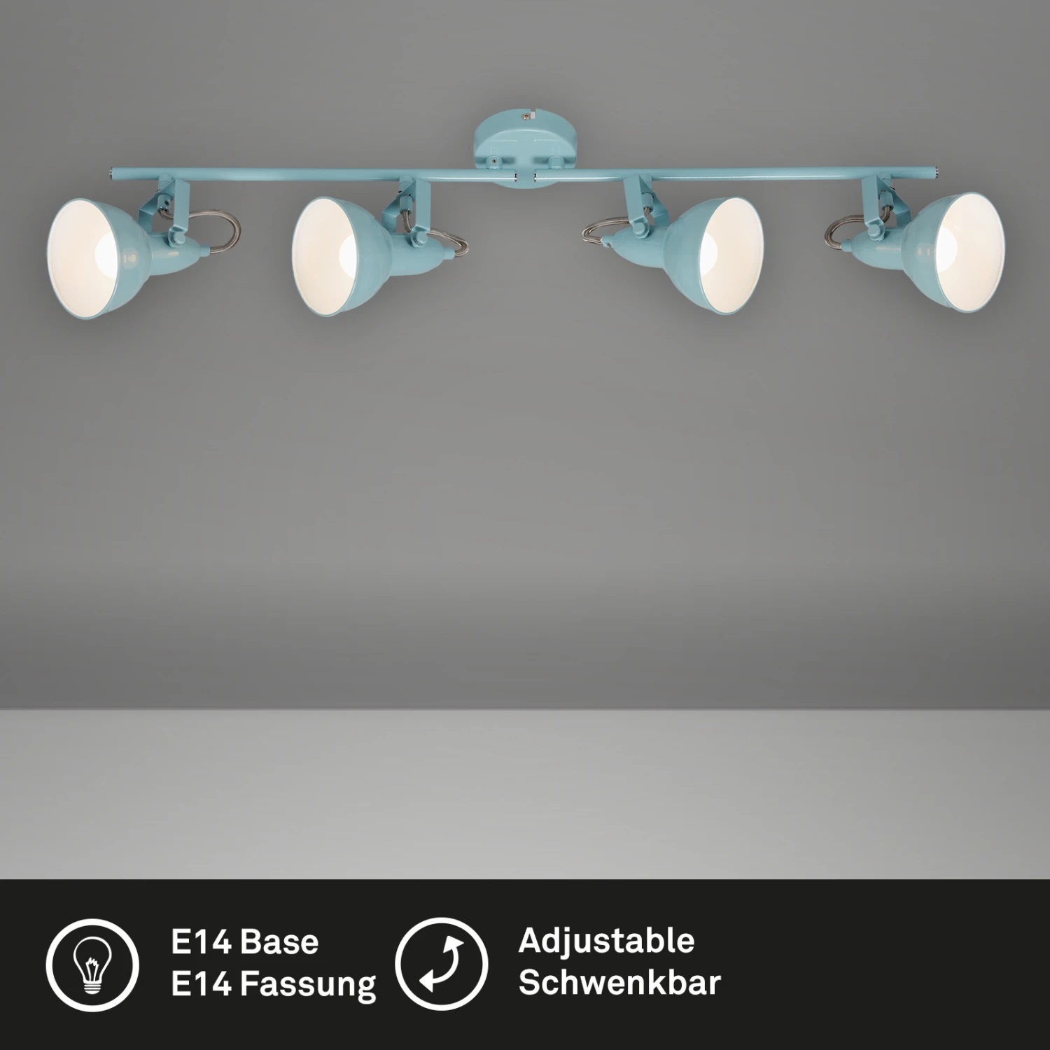 – Runde Sache: Die kreisförmigen Lampenschirme sind von innen weiß, von außen mintfarben, haben einen Durchmesser von 10.5 cm und können in alle Richtungen gekippt und gedreht werden.
