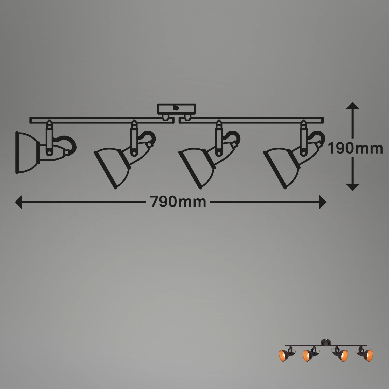 – und schwenkbar und somit individuell einstellbar. Abmessungen der Wohnraumleuchte: 790x190mm (LxH). Die maximale Wattage für die Lampe beträgt 4 x 40 Watt (E14 Fassung).