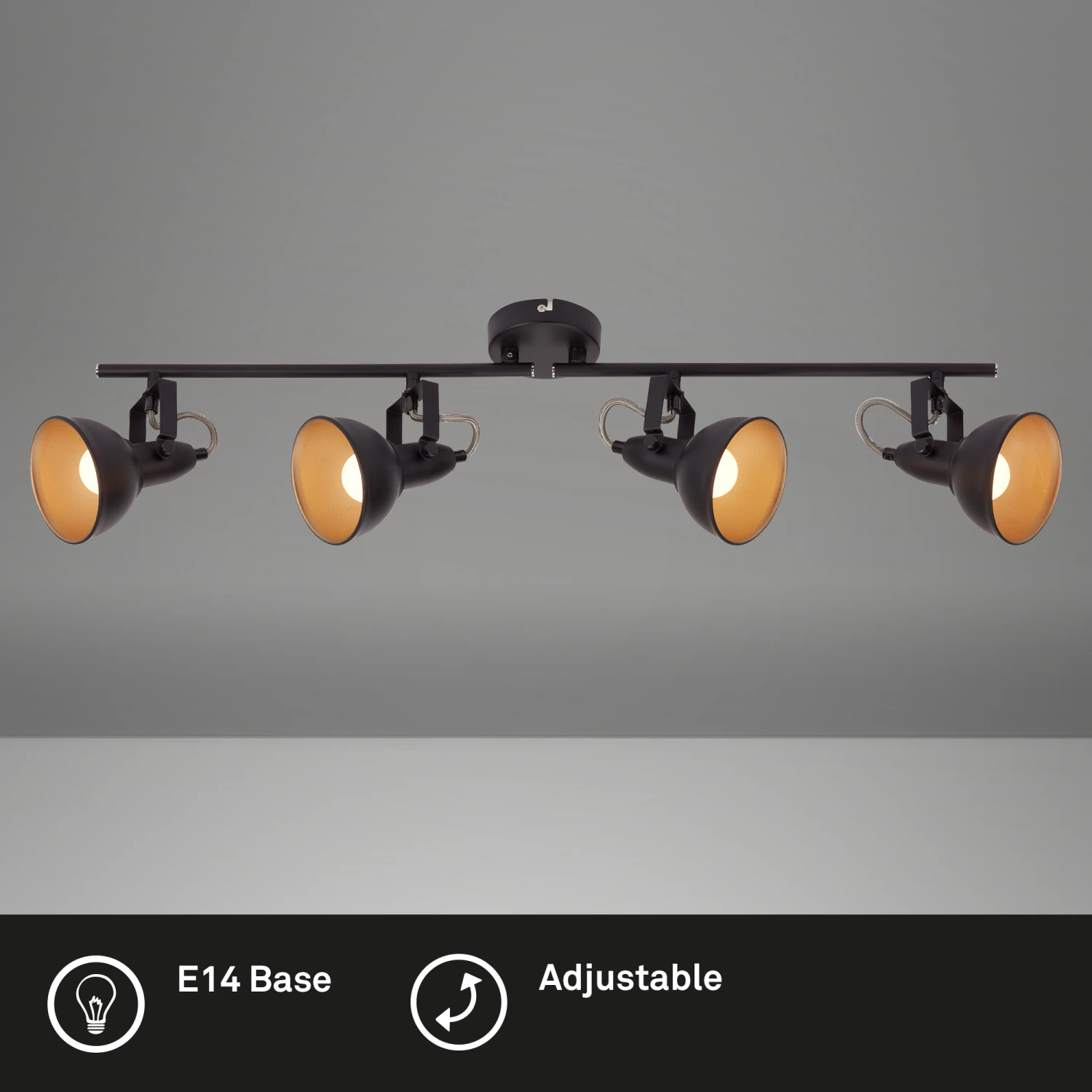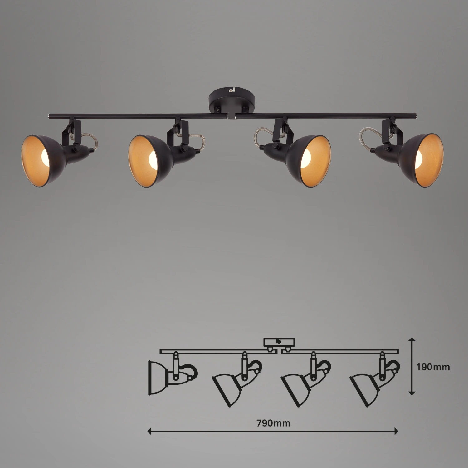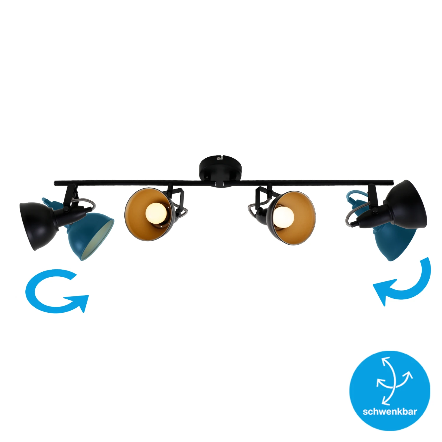 – Moderner 4-flammiger Deckenstrahler gefertigt aus Metall. Die Spots in eleganter retro/ vintage Optik sind ideal als Wohnzimmerlampe oder Schlafzimmerlampe.