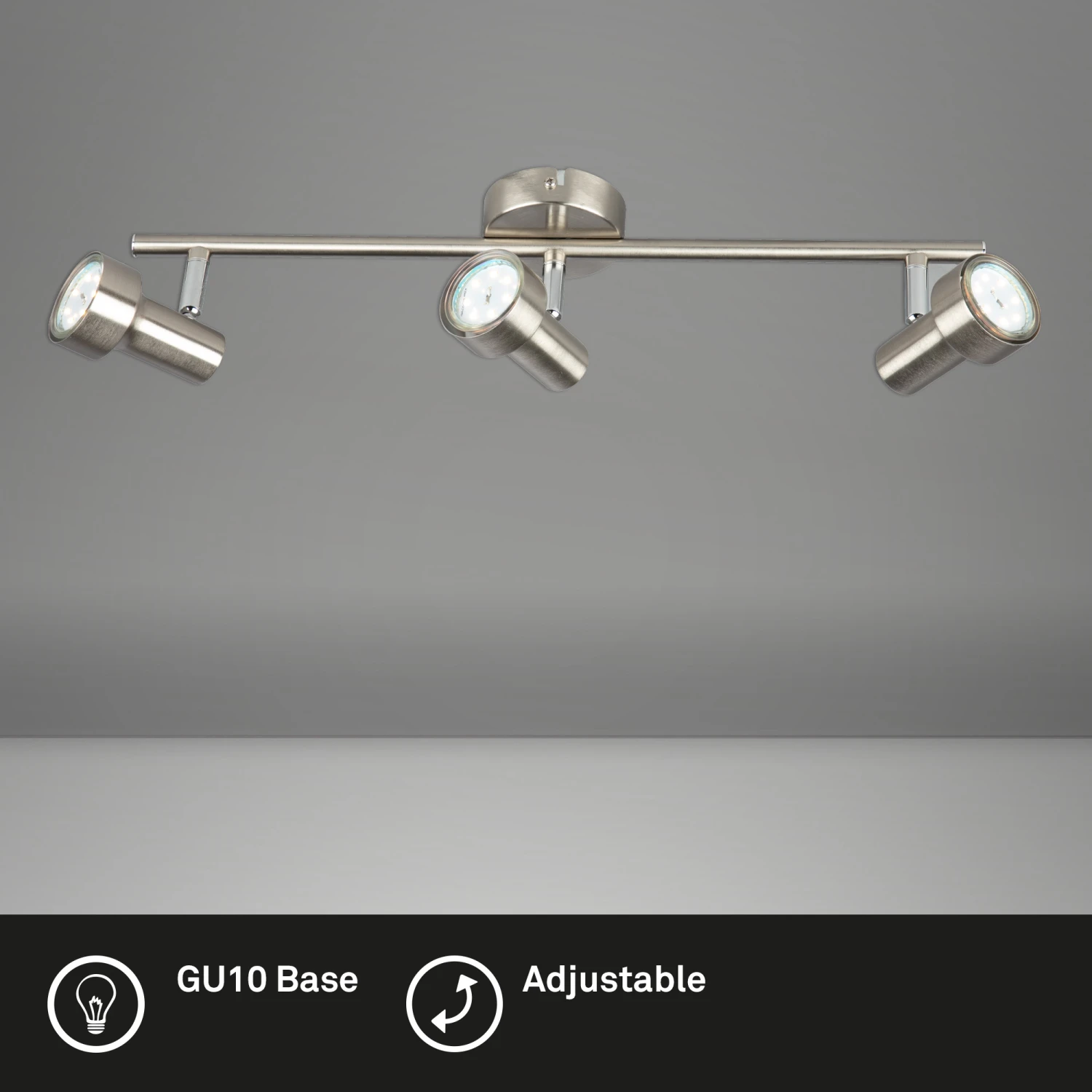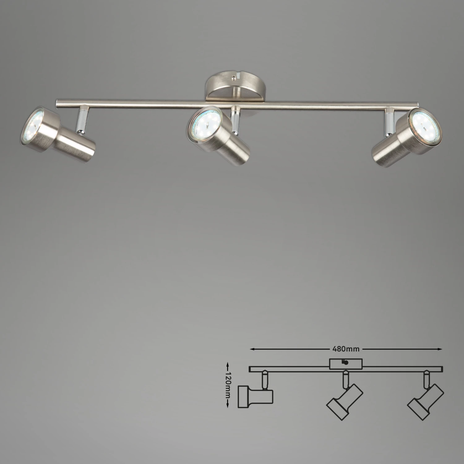 LED Deckenleuchte, 3-flammig „SUB“ Metall / matt-nickel inkl. 3 x LED/GU10 3W 250lm 3.000K Lebensdauer 20.000 h, Ra>=80, nicht dimmbar, Strahler schwenk