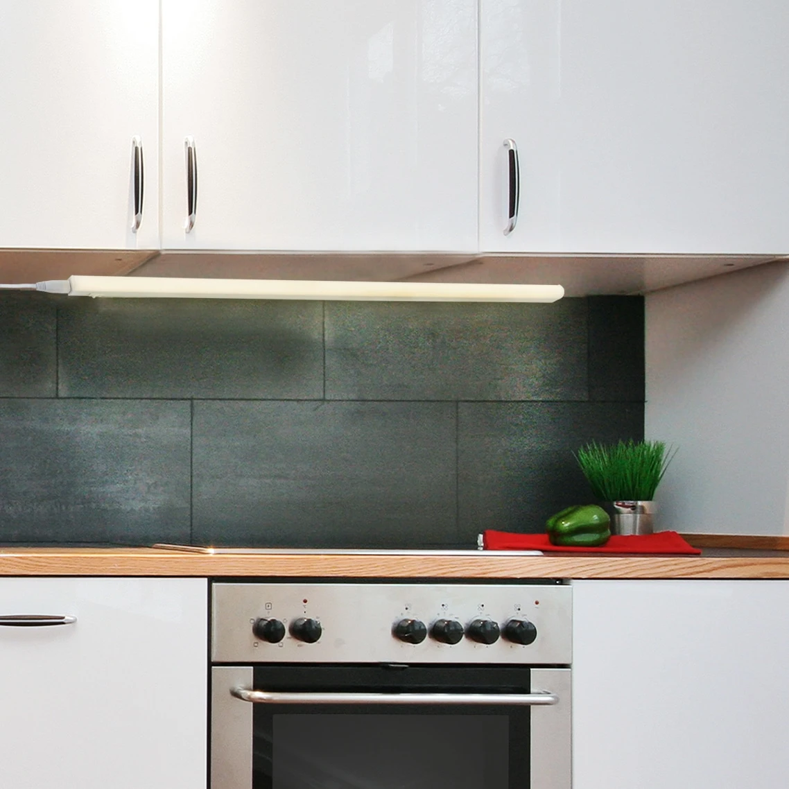 – Moderne LED Küchenunterbauleuchte in weiß mit einer Länge von 87.3 cm. Vielfältig verwendbar, zum Beispiel als Arbeitsbeleuchtung für die Küche, Möbelleuchte oder Werkbanklampe. Gefertigt aus Kunststoff, daher sehr leicht und somit einfach zu montieren.