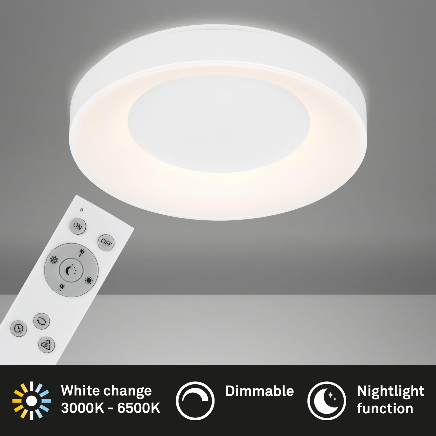 – Weitere Funktionen sind die Timerfunktion und die Nachtlichtfunktion. Bei der Nachtlichtfunktion wird die Leuchte in eine ganz niedrige warmweiße Dimmstufe heruntergeregelt.