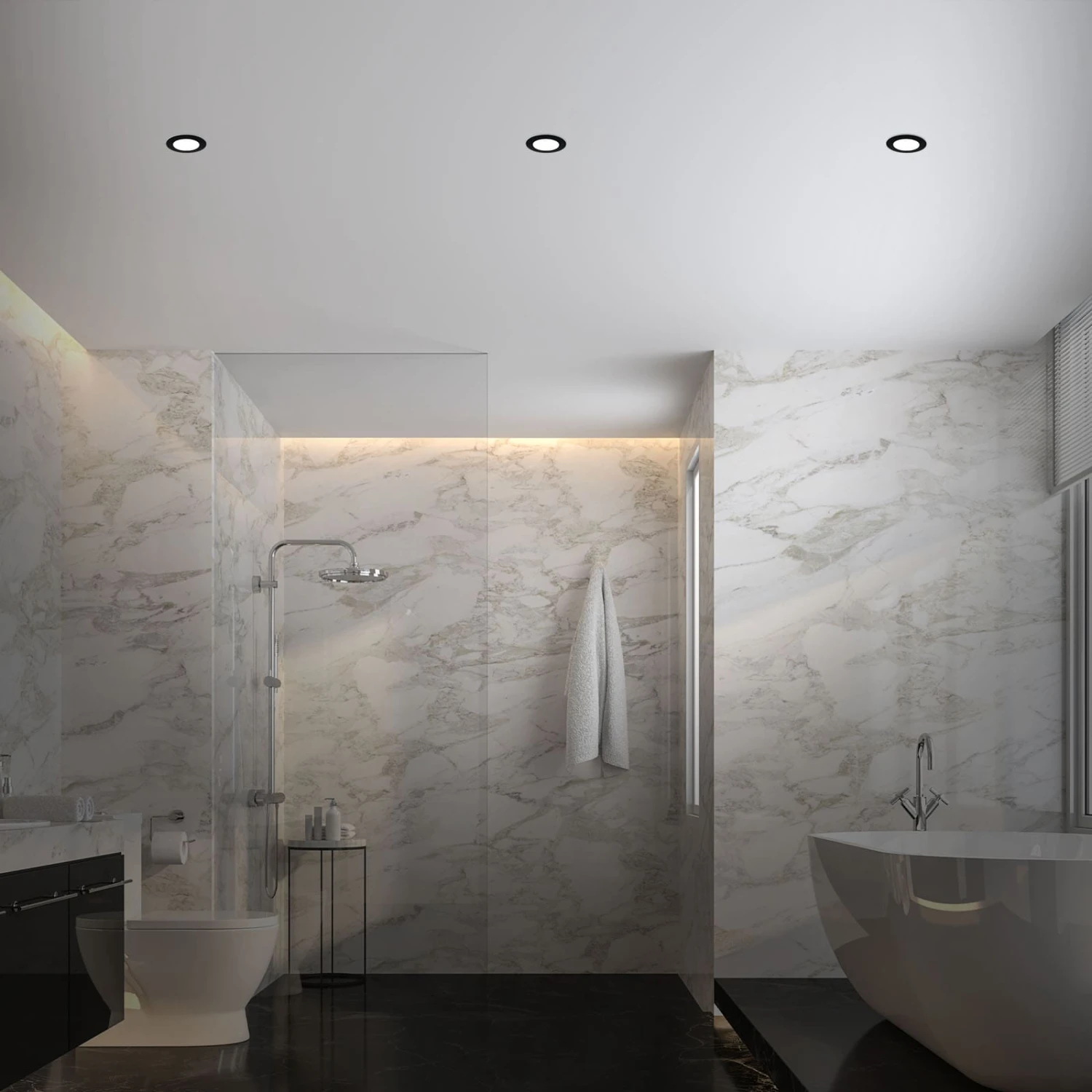 Die Funktionalität dieses Sets aus drei Deckeneinbauleuchten steht im Mittelpunkt. Mit veränderbarer Farbtemperatur, dimmbarem Licht, Timer und Nachtlicht bieten die LED Einbauleuchten viele Funktionen. Durch die Schutzart IP44 sind die Deckeneinbaustrahler perfekt für das Badezimmer geeignet. Durch die mitgelieferte Fernbedienung kann alles kann bequem aus der Ferne gesteuert werden. Mit der Fernbedienung können Sie die Farbtemperatur und Helligkeit der LED-Einbaustrahler einstellen. In drei Stufen können Sie zwischen warmweißem, neutralweißem und kaltweißem Licht (3000-6500K) wählen. Sie können auch einen Timer für die Deckenspots einstellen, der die Einbaulampen 60 Minuten lang leuchten lässt, bevor sie sich aus