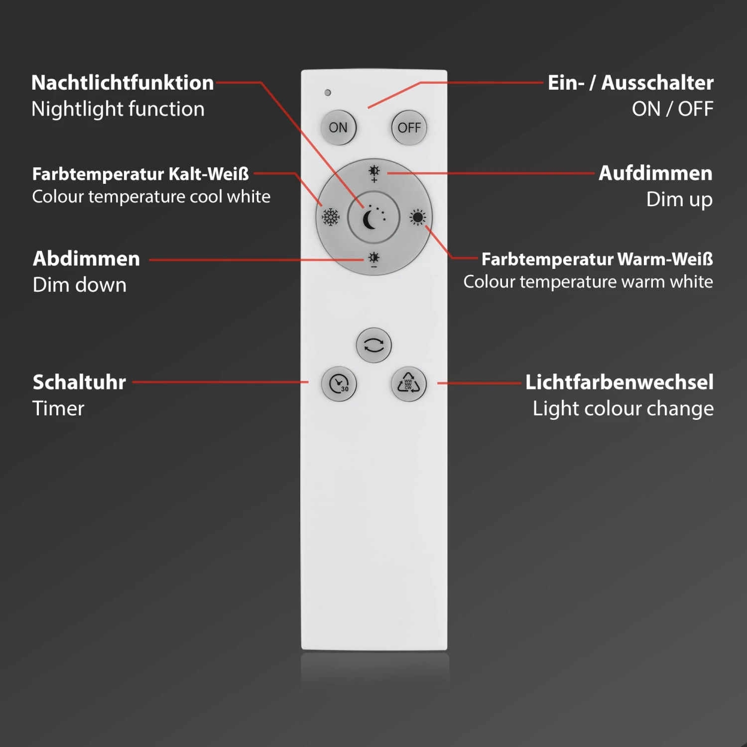 – Dank der Dimmbarkeit und der Farbtemperatursteuerung (3.000 Kelvin bis 6.500 Kelvin; warmweiß bis kaltweiß) können Sie die Lichtverhältnisse optimal auf Ihre Bedürfnisse anpassen
