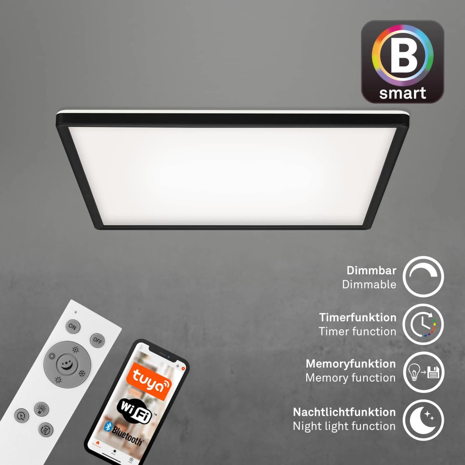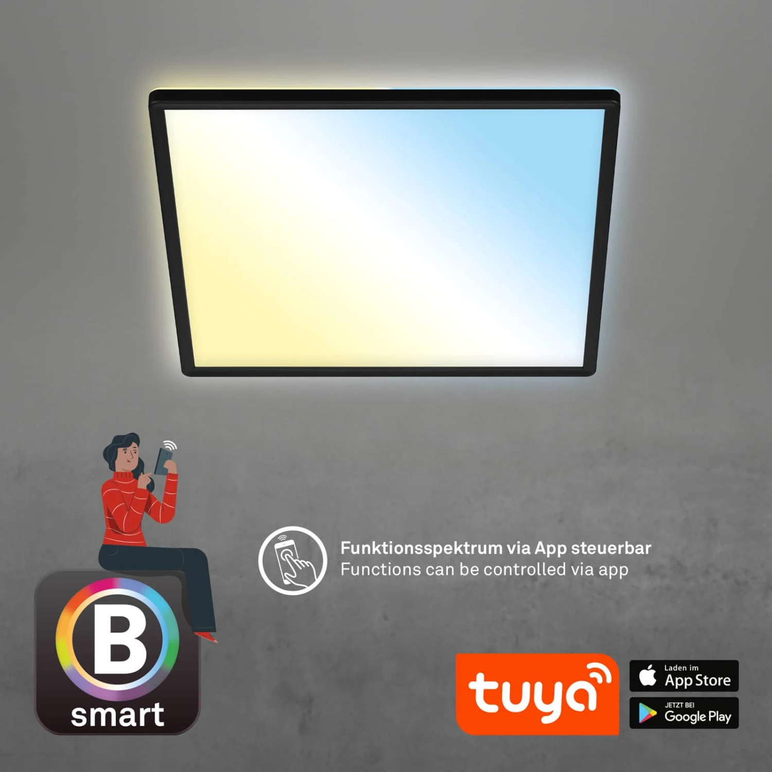 Diese moderne LED Lampe ist vielseitig einsetzbar z.B. als Wohnzimmerlampe oder Schlafzimmerleuchte. Per mitgelieferter Fernbedienung ist die Leuchte bequem vom Sofa aus anzusteuern. Besonders die Sprachsteuerung über Ihren Sprachassistenten, sowie die smarte Steuerung per App über Ihr Smartphone macht diese Leuchte besonders. Wählen Sie beispielweise Ihre liebste Farbtemperatur aus und passen Sie so die Lichtverhältnisse individuell an Ihre Bedürfnisse an (2700K Â? 6500K). Die ausgewählte Farbtemperatur wird durch die sogenannte Memoryfunktion automatisch abgespeichert. Die Wohnzimmerlampe hat die Schutzart IP20. Produktabmessungen: 420x420x25 mm (DxH).