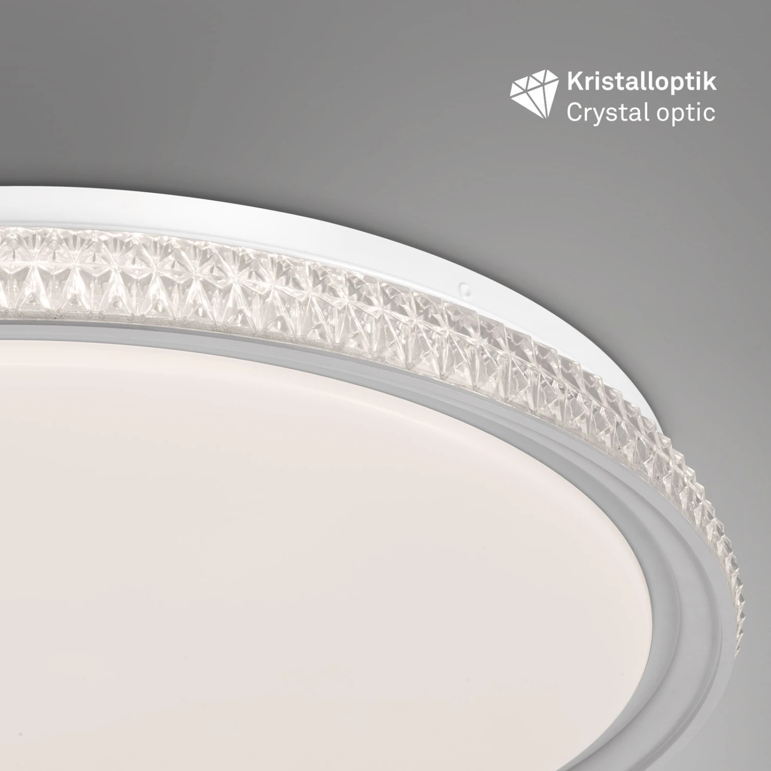 Diese LED Deckenleuchte zaubert auch in Ihr Zuhause eine angenehme, stimmungsvolle Atmosphäre. Vielseitig einsetzbar, z.B. als Wohnzimmerleuchte, Schlafzimmerleuchte oder Esszimmerleuchte, sorgt Sie mit 40 Watt, 4000 Lumen Lichtleistung und einer wählbaren Farbtemperatur von 3000 -6500 Kelvin für eine optimale Ausleuchtung. Mit Hilfe der Fernbedienung, lässt sich die Leuchte bequem vom Sofa aus ansteuern und dimmen. Dadurch können Sie die Lichtverhältnisse optimal an Ihre Bedürfnisse anpassen. Mit einer durchschnittlichen Lebensdauer von ca. 25000 Stunden ist die Kristalleuchte zudem ein treuer Begleiter. Produktabmessungen: 500×82 mm (DxH)
