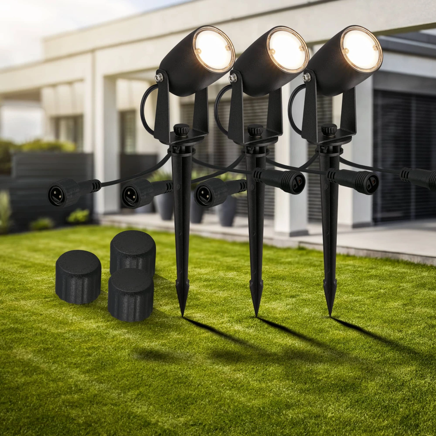 3er Set LED Spots mit Erdspieß für das CONNECT TO SHINE 12V Gartensystem