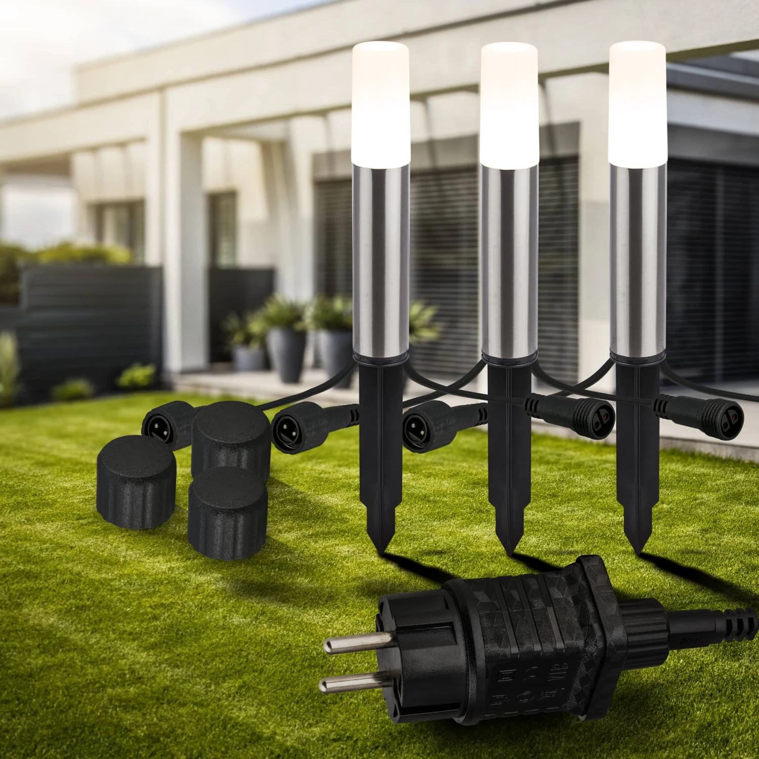 3er Set LED Poller mit Erdspieß für das CONNECT TO SHINE 12V Gartensystem