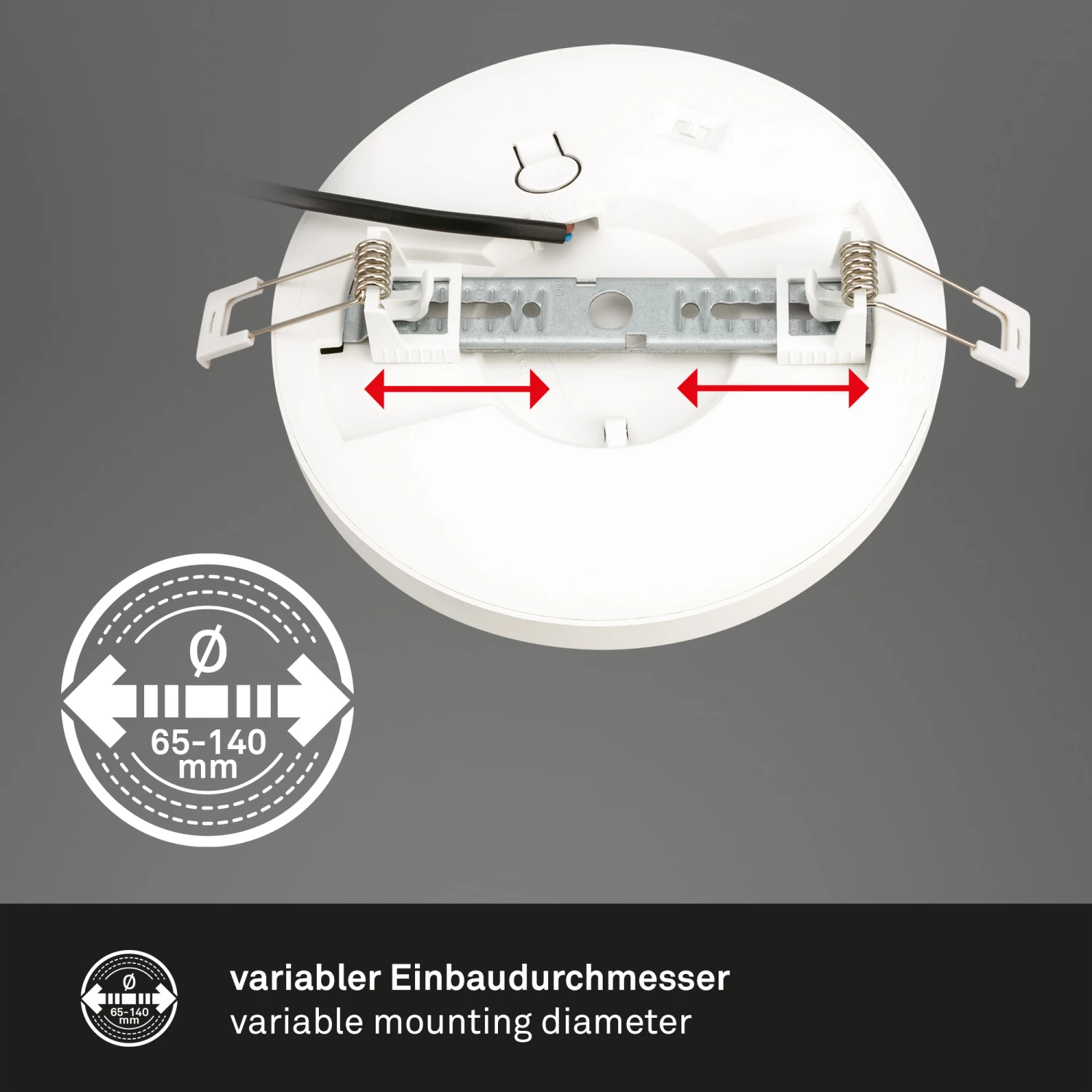 Einstellbare Farbtemperatur: Mit dem integrierten CTS Schalter am Gehäuse können Sie die Farbtemperatur des LED Spots nach Ihren Wünschen anpassen. Wählen Sie zwischen 3000K und 4000K (warmweiß, neutralweiß). Flexibilität: Ein Highlight dieser LED Lampe ist die Verstellbarkeit des Einbaudurchmessers. Die Wohnzimmerlampe ist durch eine verstellbare Schiene auf der Rückseite für Bohrungen von 65-140 mm Durchmesser geeignet. Technische Daten: Mit einer Leistung von 12 Watt und einer Helligkeit von 1190 Lumen bietet dieser Einbauspot LED eine ansprechende Beleuchtung. Einbaumaße: Mit Abmessungen von 170x17mm (DxH) und Einbaumaßen von 65-140mm x 40mm (DxH) ist dieser LED Deckenstrahler für Innen extrem flach und problemlos in Decken oder Wänden integrierbar