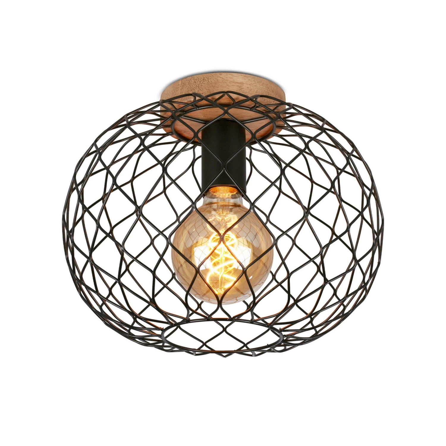 Diese schwarze Deckenleuchte bringt ein edles und gleichzeitig rustikales Ambiente in Ihren Wohnbereich Â? das edle, schwarze Design in Kombination mit der Basis aus Holz sorgt schnell für einen Hingucker. Die Deckenlampe setzt mit seinem Retrolook stilvolle Akzente in Ihrem Wohnraum. Die Wohnzimmerleuchte verfügt über eine E27 Fassung