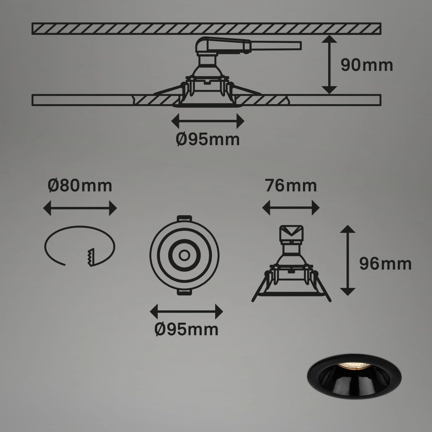 Einbauleuchten-Set, Ø9,5 Cm, 3x GU10, Schwarz