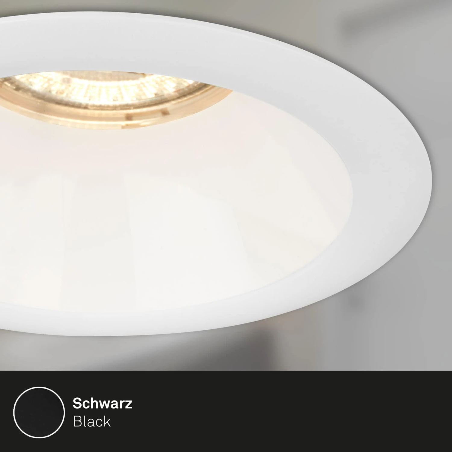 Die zurückgesetzte GU10 Fassung ist das USP dieses Sets aus 3 Deckeneinbaustrahlern. Dank der versenkten Fassung schauen Sie nicht direkt in die Lichtquelle. Die Einbaulampen eignen sich aufgrund ihres trendigen Stils hervorragend für Ihr Wohnzimmer, Ihr Schlafzimmer oder Ihren Flur. Die Deckenspots werden ohne Leuchtmittel geliefert. Es werden 3 GU10-Birnen mit einer maximalen Leistung von 9 Watt benötigt. Die Deckeneinbauleuchten IP23 besitzen die Abmessungen 95×61 mm mit einem Einbaumaß von 80×90 mm. Die Produktfarbe ist Weiß