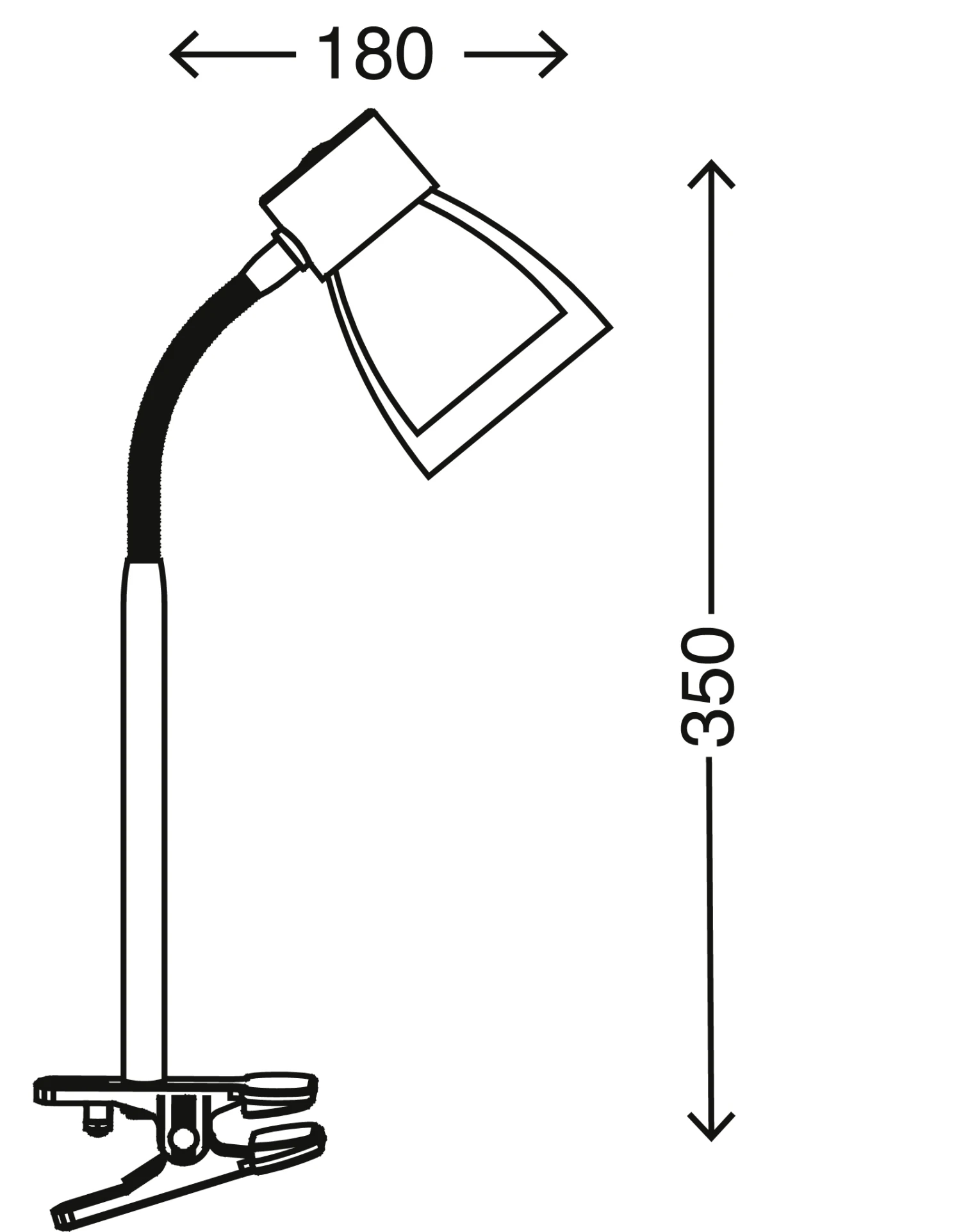 Klemmleuchte, 1-flammig „JAM“ Metall-Kunststoff / titanfarbig Leuchtkopf Kunststoff titan-klar exkl. 1 x E14 40W max. ohne Leuchtmittel inkl. Zuleitung, inkl. Schnurschalter AN/AUS Kopf über Flexarm verstellbar, Kabel und Klammer schwarz IP20 / Schutzklasse II 180x350mm (AxH)