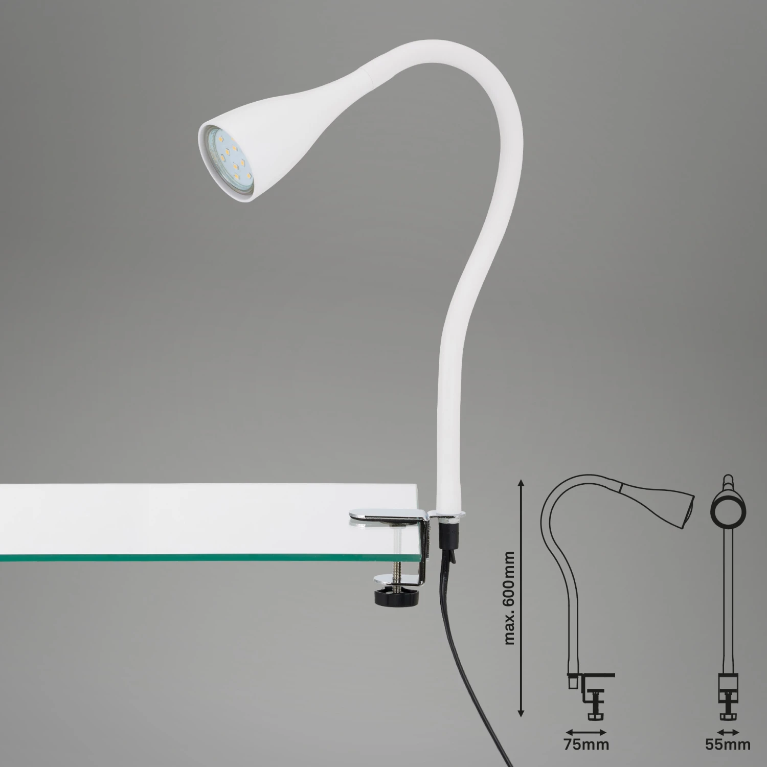 LED Klemmleuchte 1-flammig „ELASTI“ Metall-Kunststoff / weiss inkl. 1 x LED/GU10 3W 250lm 3.000K Lebensdauer 20.000 h, Ra>=80, nicht dimmbar, flexibel, inkl. Schnurschalter IP20 / Schutzklasse II 55x600mm (BxH)