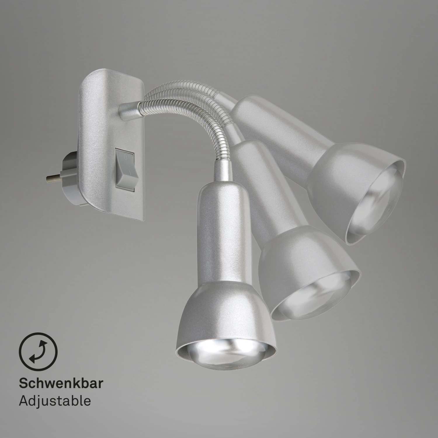 – Die Steckerlampe hat einen Flexarm und lässt sich so in alle Richtungen drehen und schwenken.