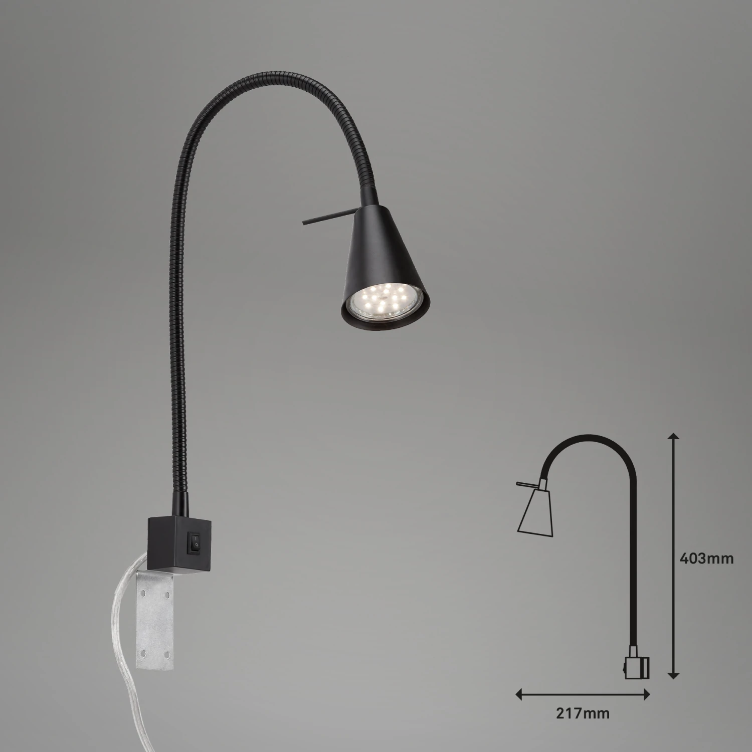 – Produktabmessungen: 403x217mm (HxA), Basis 35x35mm, Kopf: 58mm (D)