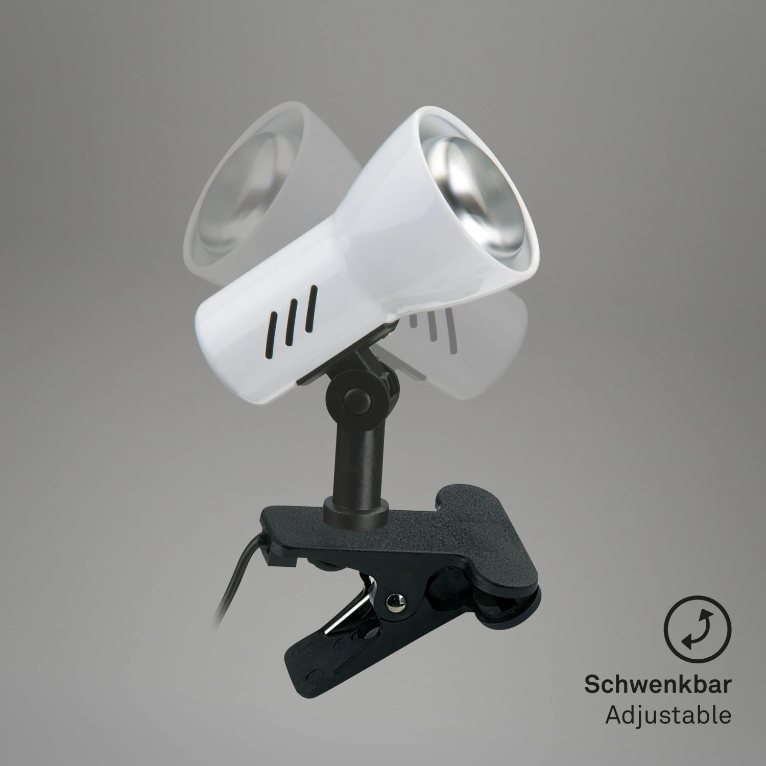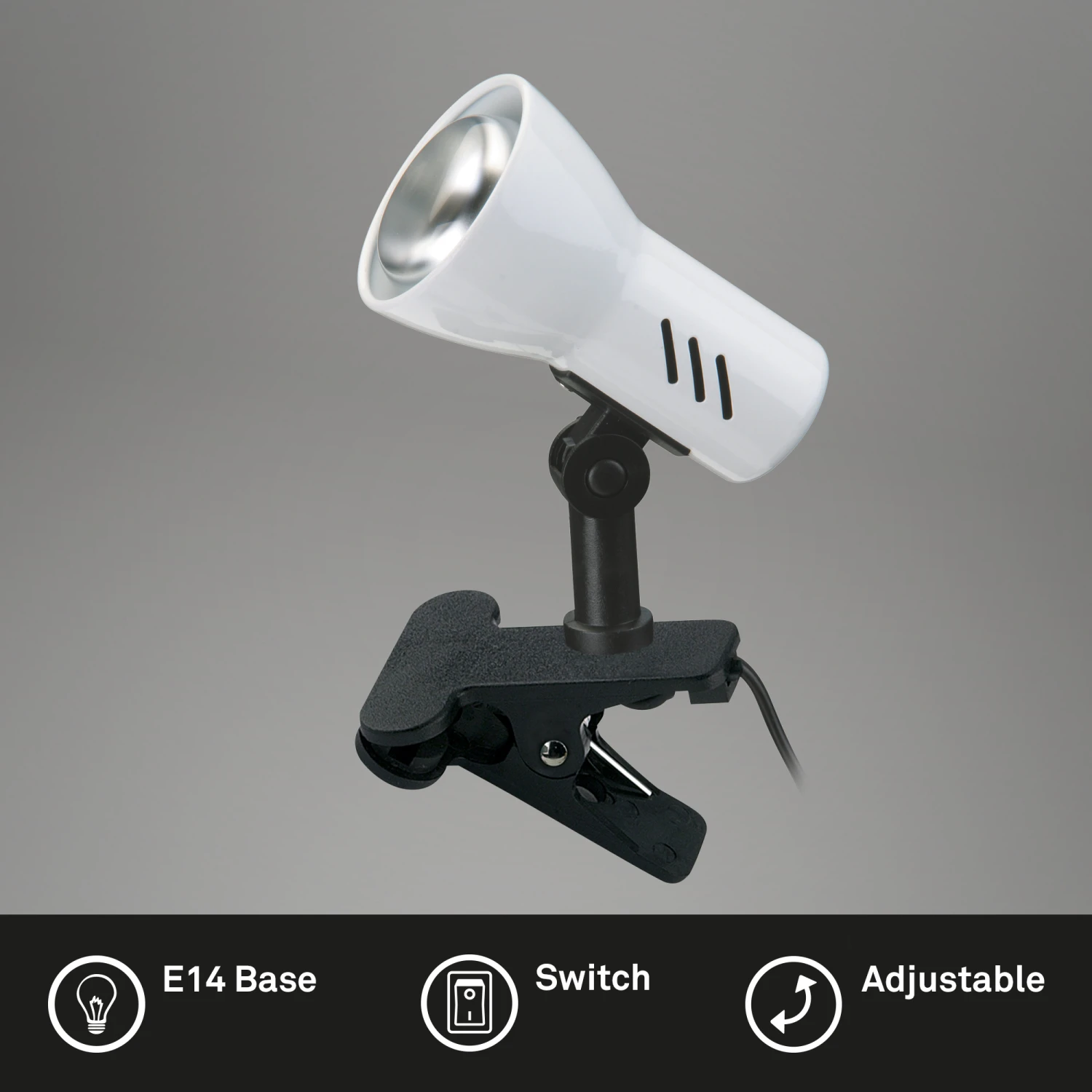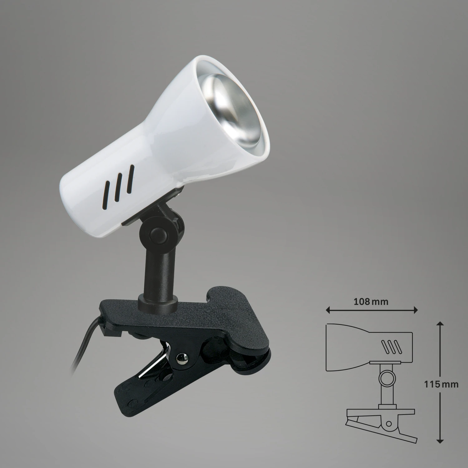 Klemmleuchte, 1-flammig „LOCK“ Metall-Kunststoff / weiß exkl. 1 x E14 40W max. ohne Leuchtmittel inkl. Zuleitung mit Schnurschalter AN/AUS, Strahler dreh