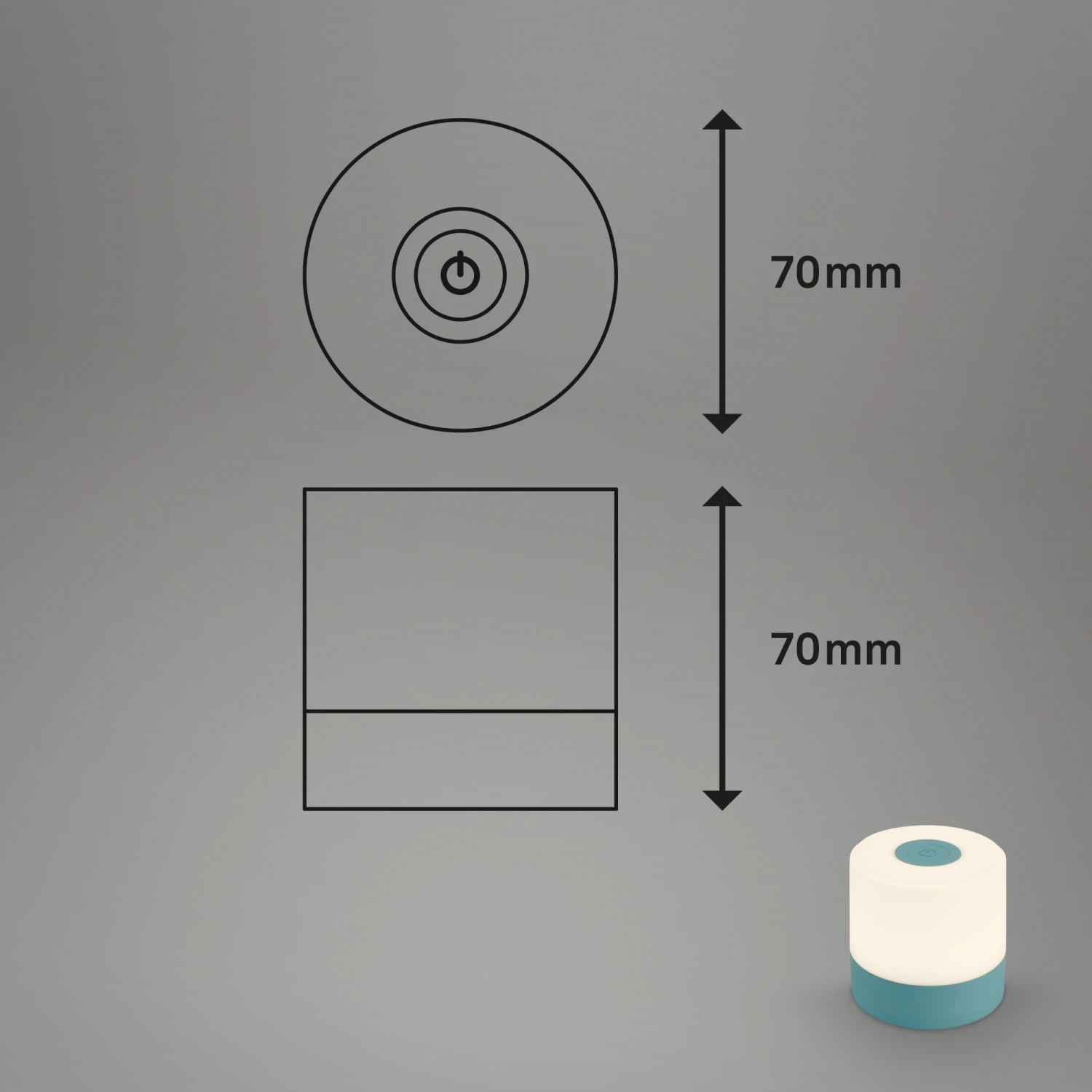 Die blaue Mini Tischlampe wird mit Akku betrieben und kann als mobiles Licht überall im Haus aufgestellt werden. Die Leuchtdauer beträgt bei niedriger Dimmstufe bis zu 15 Stunden bei einer Ladezeit von 2,5h. Die Mini Kinderleuchte ist 7 cm hoch, hat ein kleines Design und kann fast überall platziert werden. Die 3-stufig dimmbare kleine Batterielampe kann als Mini Nachttischlampe, dekoratives Nachtlicht, mobile Tischleuchte und dekoratives Licht verwendet werden. Warmweißes Licht mit einer Temperatur von 2700 Kelvin dient als Entspannungslicht im Wohn-, Flur