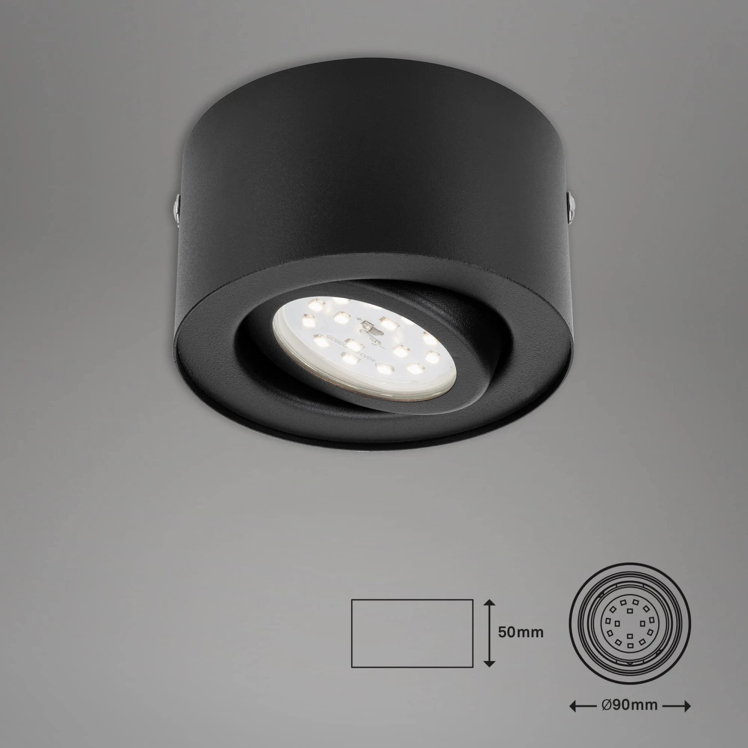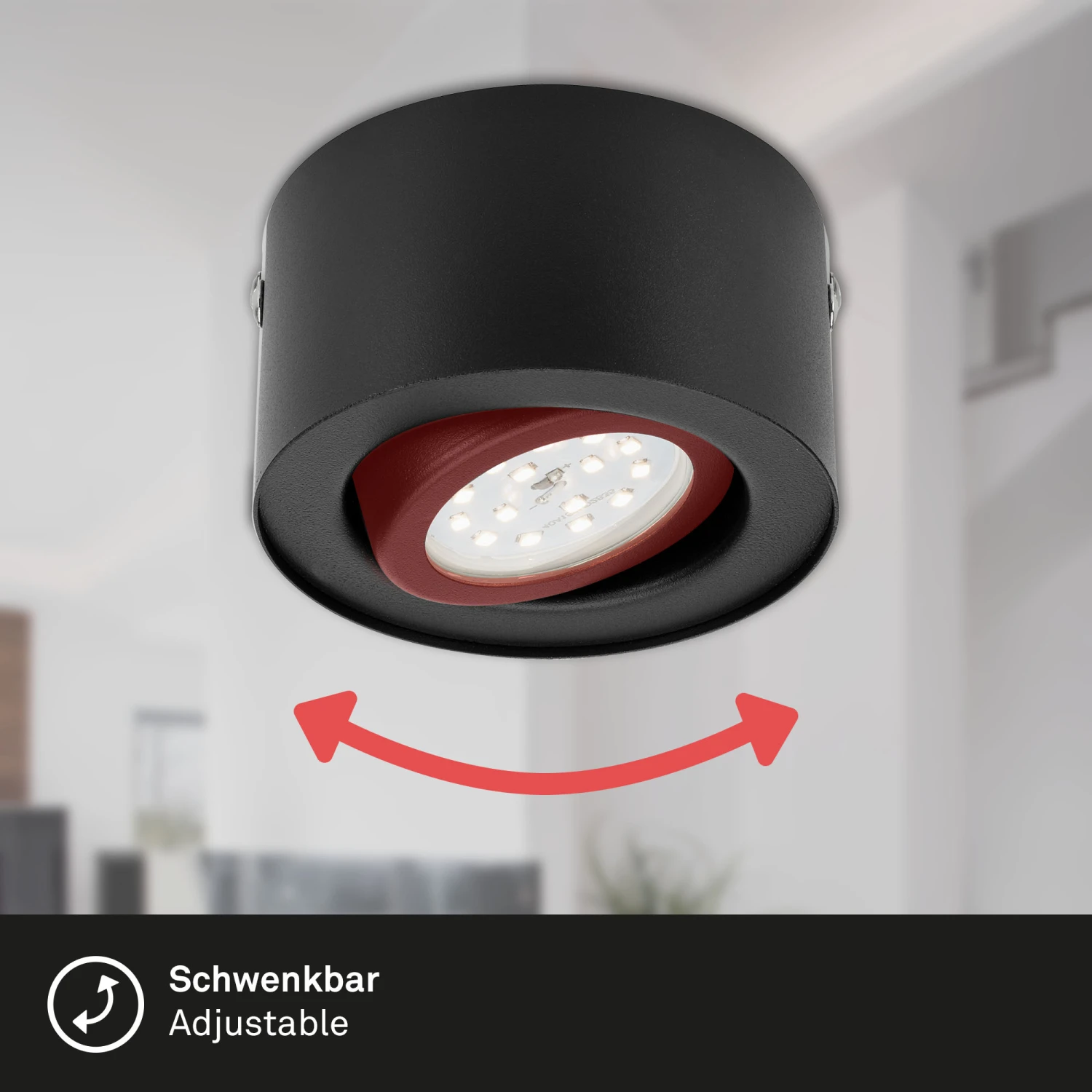 – Modul Metall Moderne, runde LED Aufbauleuchte in schwarz, gefertigt aus Metall Die Deckenleuchte ist vielseitig einsetzbar, z. B. als Schlafzimmerlampe oder Wohnzimmerlampe und verfügt über einen schwenkbaren Reflektor, so dass das Licht individuell gesteuert werden kann Das fest verbaute LED-Modul überzeugt mit energiesparenden 5 Watt und sorgt mit 470 Lumen Lichtleistung und einer Farbtemperatur von 3. 000 Kelvin für ein angenehm warmweißes Licht Die durchschnittliche Lebensdauer liegt bei ca. 20. 000 Stunden und durch die Schutzart IP20 ist die Aufbaudeckenleuchte nicht für Feuchträume geeignet Produktabmessungen: 90x50mm (DxH)